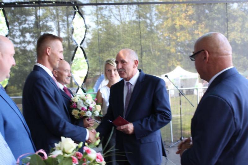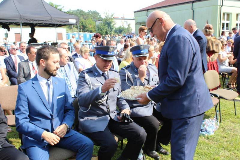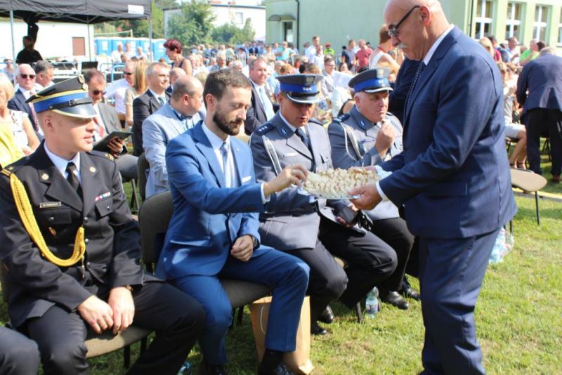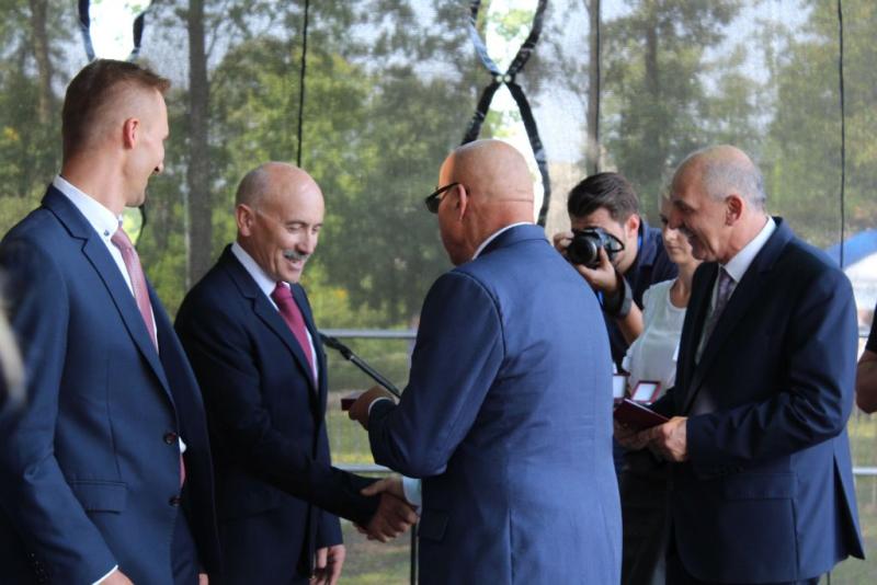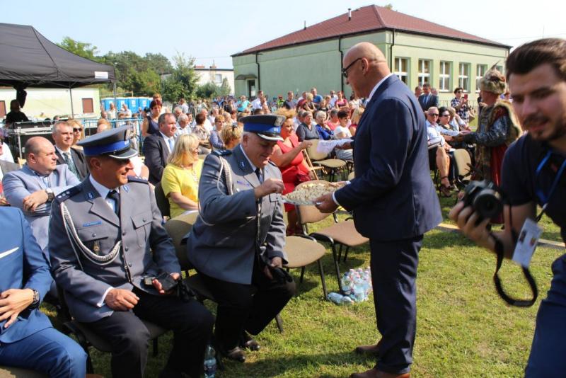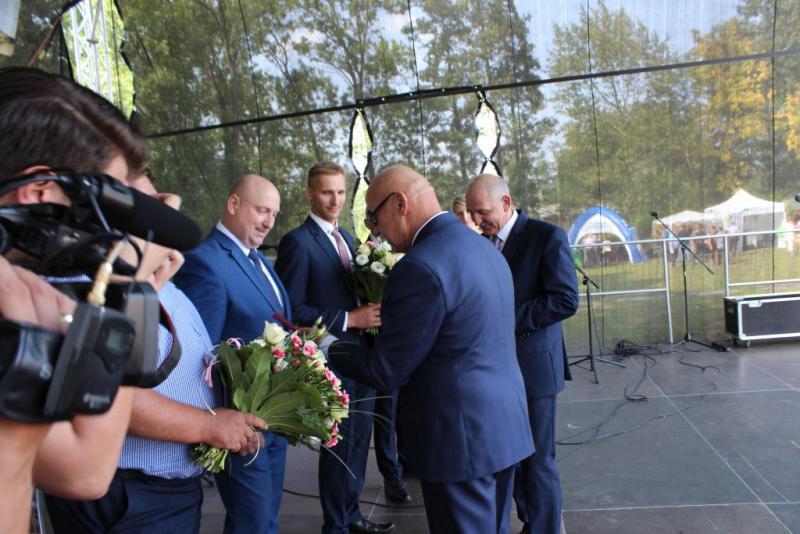 W dniu 2 września 2018 r. w Bronisławowie odbyły się Dożynki Powiatowo-Gminne. Gospodarzami tegorocznej uroczystości był Starosta Zgierski - Bogdan Jarota oraz Wójt Gminy Głowno - Marek Jóźwiak. Dożynki to okazja aby podziękować rolnikom, przekazać wyrazy szacunku, wdzięczności za Ich ciężką pracę i codzienny trud. Uroczystości rozpoczęła msza święta, którą odprawił Proboszcz Parafii Św. Jakuba Apostoła w Głownie - Ks. dr Stanisław Banach oraz Proboszcz Parafii Św. Maksymiliana Kolbe w Głownie - Ks. Tomasz Trzciński. Następnie rozpoczęła się część obrzędowa dożynek. Na scenę zostali poproszeni Pan Starosta, Pan Wójt oraz Starostwie dożynek, którymi byli Pani Lucyna Gibka z Lubiankowa oraz Pan Jerzy Kałuża z Mąkolic. Włodarza powiatowi oraz gminni częstowali wszystkich przybyłych na uroczystość poświęconym chlebem oraz miodem. Kolejnym punktem uroczystości było wręczenie wieńców dożynkowych. Pan Starosta otrzymał wieniec od Koła Gospodyń Wiejskich z Kamienia natomiast Pan Wójt od Pań z Koła Gospodyń Wiejskich w Chlebowicach. Dożynki to doskonała okazja aby wyróżnić zasłużonych rolników i tak również było tym razem. Odznaczenia od Ministra Rolnictwa i Rozwoju Wsi otrzymali: Krzysztof Marciniak, Tomasz Łukasik, Grzegorz Wojciechowski oraz Wojciech Kaźmierczak. Ostatnim punktem części oficjalnej były występy zespołów ludowych. Swoje umiejętności na scenie zaprezentowali: Zespół Pieśni i Tańca Mąkolice, Aleksandrowianie oraz Amatorski Zespół Śpiewaczy z Maszkowic. Wszyscy przybyli na uroczystość goście mogli skosztować przysmaków przygotowanych przez Panie z Kół Gospodyń Wiejskich z: Boczek Domaradzkich, Bronisławowa i Karasicy, Domaradzyna, Mąkolic, Mięsośni, Władysławowa Popowskiego, Ziewanic, Ostrołęki, Woli Lubiankowskiej, Lubiankowa, Koźla oraz stowarzyszenia: Śliwniczanie wraz z Janem Wojtczakiem i Tęczowe Siedlisko natomiast uczniowie z Zespołu Szkół nr 1 im. Cebertowicza w Głownie przygotowali zdrowe i smaczne soki. Mieliśmy również okazję gościć twórców ludowych z całego powiatu, którzy prezentowali swoje dzieła. Na stoiskach promocyjnych Powiatu Zgierskiego, Gminy Głowno oraz Miasta Głowna czekało natomiast wiele atrakcji dla małych i dużych. Dla dzieci przygotowano wesołe miasteczko a także miasteczko strażackie. Po częściu oficjalnej rozpoczęła się część rozrywkowa. Wszyscy przybyli bawili się w rytmach muzyki disco polo. Na scenie mieliśmy okazję gościć Zespół Power Play oraz Jorrgus. Zabawę taneczną poprowadził wszystkim dobrze znany zespół Cosmo. Cieszymy się, że przy współpracy Powiatu Zgierskiego mogliśmy zorganizować tak wspaniałą uroczystość, która przyciągnęła tłumy z całego powiatu, które z radością uczestniczyli w tej imprezie.