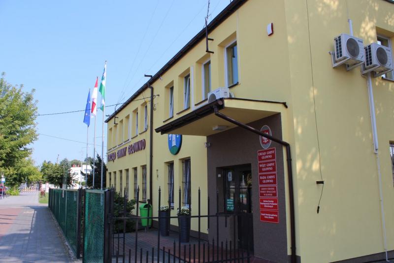 W dniach 14 – 22 sierpnia 2018 roku zostały przeprowadzone prace związane z remontem elewacji budynku Urzędu Gminy Głowno. Zakres prac obejmował oczyszczenie i odgrzybienie podłoża wraz z zagruntowaniem odpowiednim preparatem, naprawę uszkodzeń tynku, dwukrotne pomalowanie ścian farbą silikonową odporną na „zielenienie” i zagrzybienie, pomalowanie krat okiennych, remont cokołu okalającego budynek, a także renowację napisu i herbu gminy.