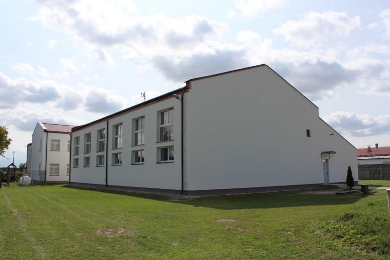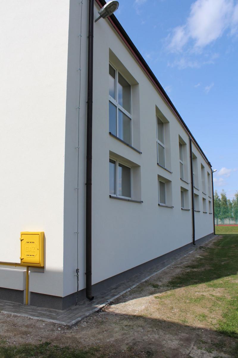 Oba zadania bardzo sprawnie zrealizowała Firma Remontowo-Budowlana „MAŁY” Roman Kawczyński, Józefkowo ul. Świerkowa 42, 87-630 Skępe z województwa kujawsko-pomorskiego, wyłoniona poprzez zapytanie ofertowe. Docieplenie sali wykonano w dniach 16 lipca – 6 sierpnia br., zakres prac obejmował docieplenie ścian i ościeży płytami styropianowymi, wykończenie ścian tynkiem silikatowo-silikonowym i niezbędne obróbki blacharskie budynku. Wykonawca zrealizował zadanie za kwotę 97 785,00 zł, zapewnił 96 miesięcy gwarancji na wykonane prace.
