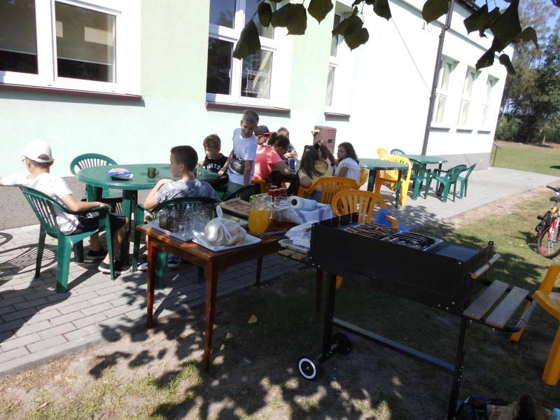 23.08.2019 r. na zakończenie zajęć wakacyjnych dzieci spędziły miłe chwile przy wspólnym grillowaniu, niektórzy rodzice przynieśli owoce i upieczone przez siebie ciasta.