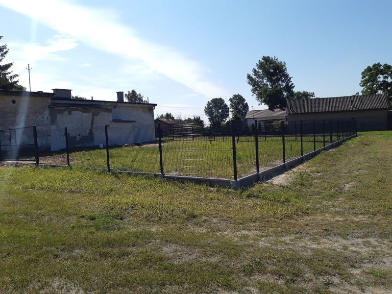 Pierwszym etapem było ogrodzenie placu wokół budynku dawnej zlewni mleka, który w ubiegłym roku został częściowo zmodernizowany z przeznaczeniem na mieszkania socjalne. Wykonano ogrodzenie panelowe o długości łącznie ponad 80 mb oraz dwie bramy wjazdowe wraz z furtkami. Prace na przełomie czerwca i lipca br. wykonała firma PPHU „Bramet-2” Agnieszka Starus, Wyskoki 33, 95-011 Bratoszewice za kwotę 16 616,07 zł brutto.