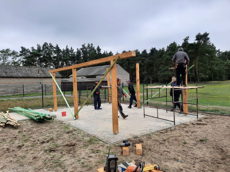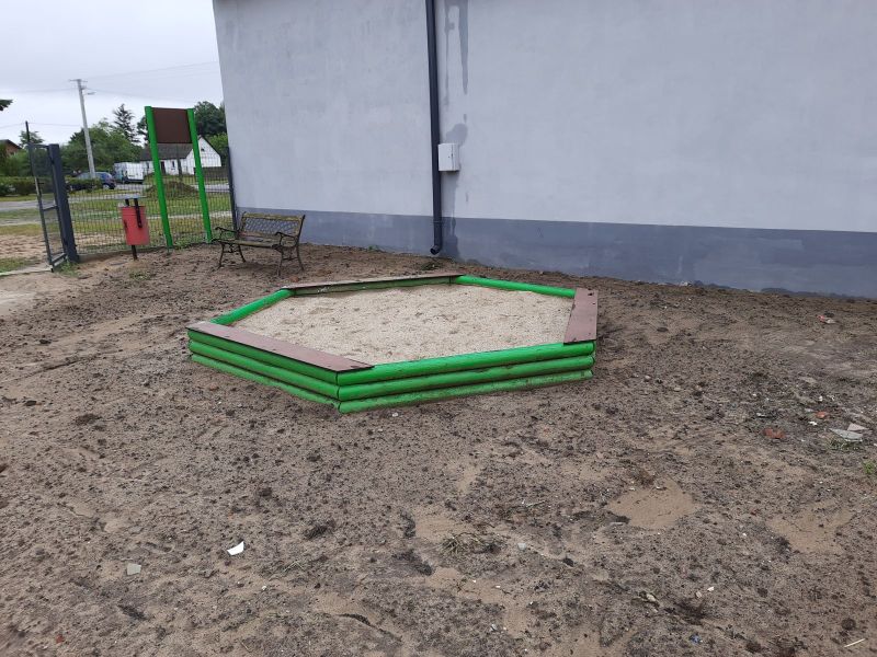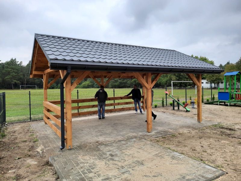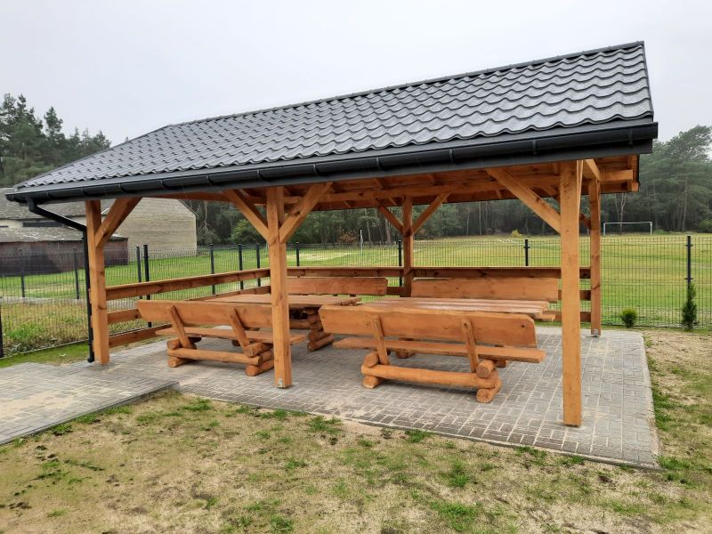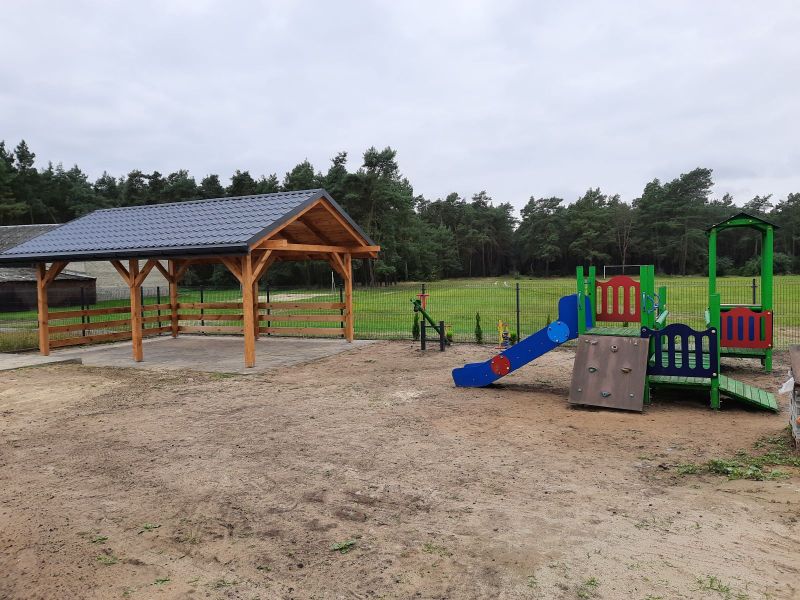 Nowo ogrodzony plac został wyposażony również w altanę o wymiarach 4 x 6 m, którą wykonała we wrześniu firma LANG-DACH Bogdan Lange, Kamień 5, 95-061 Dmosin za kwotę 8 979,00 zł brutto. Altana została wyposażona w zestaw mebli ogrodowych składający się z dwóch stołów oraz czterech ławek za kwotę 3 400,00 zł brutto oraz stacjonarny grill ogrodowy. Mieszkańcy zagospodarowali teren poprzez nasadzenia krzewów i została zasiana trawa.