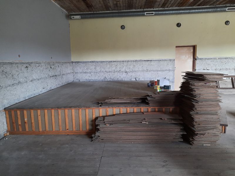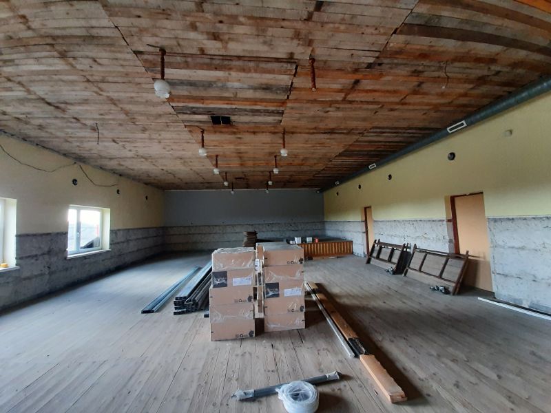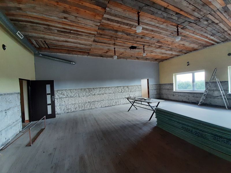Druhowie oraz mieszkańcy samodzielnie dokonali demontażu starego sufitu oraz boazerii ze ścian, pozostałe prace będą kontynuowane w przyszłym roku budżetowym.