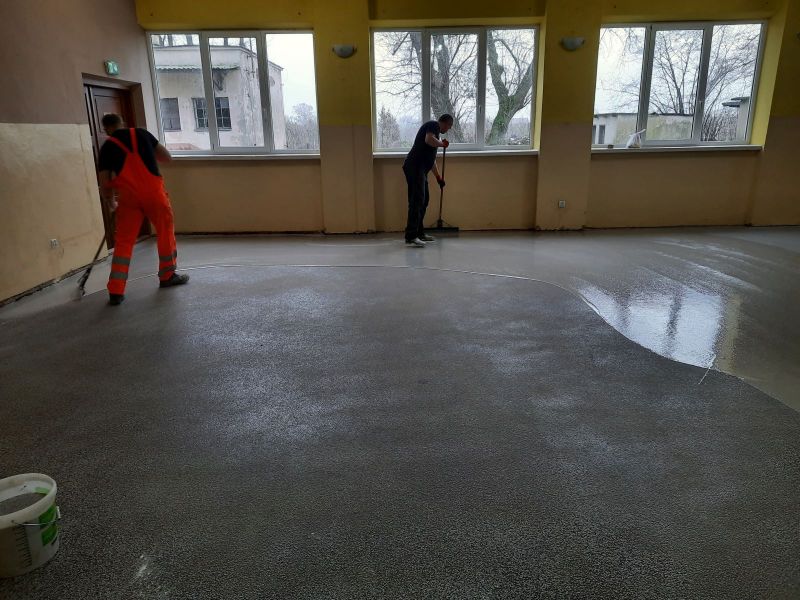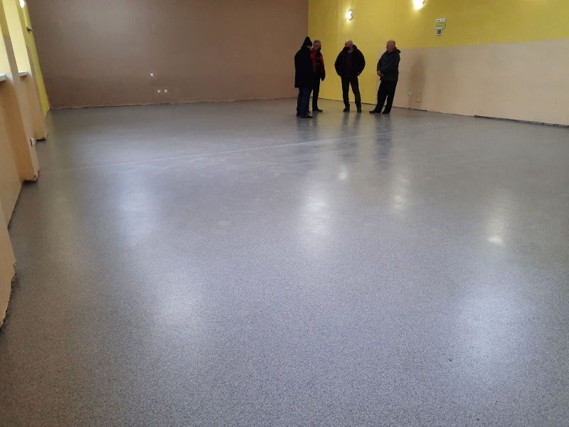 Po wyschnięciu posadzki została wykonana nawierzchnia końcowa – posadzka na bazie piasku kwarcowego oraz transparentnej żywicy epoksydowej w kolorze szarym. Prace na zlecenie gminy wykonała w grudniu br. firma Eradur Sp. z o. o., ul. Kolejowa 334 C, 05-092 Sadowa za kwotę: 20 946,90 zł brutto.