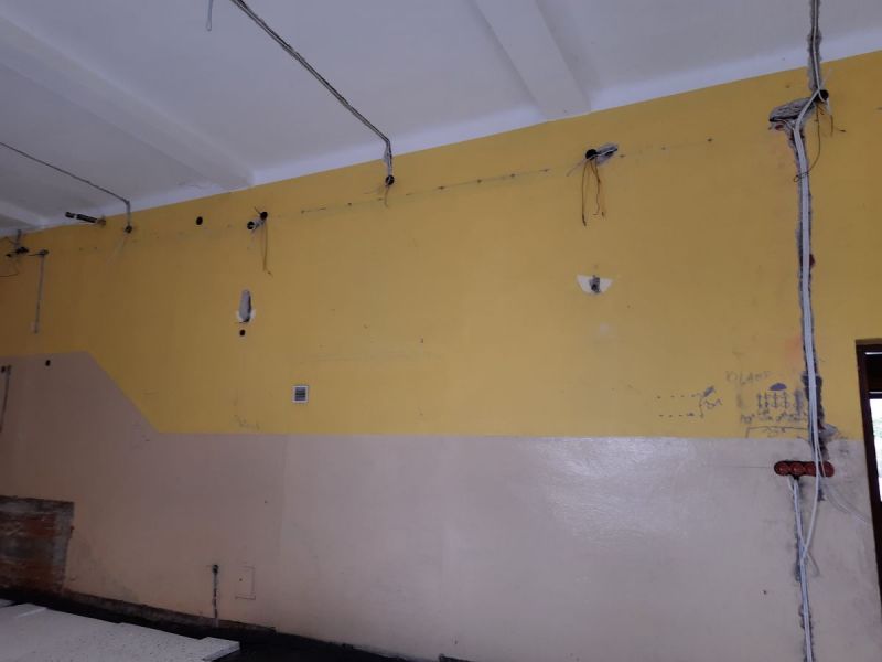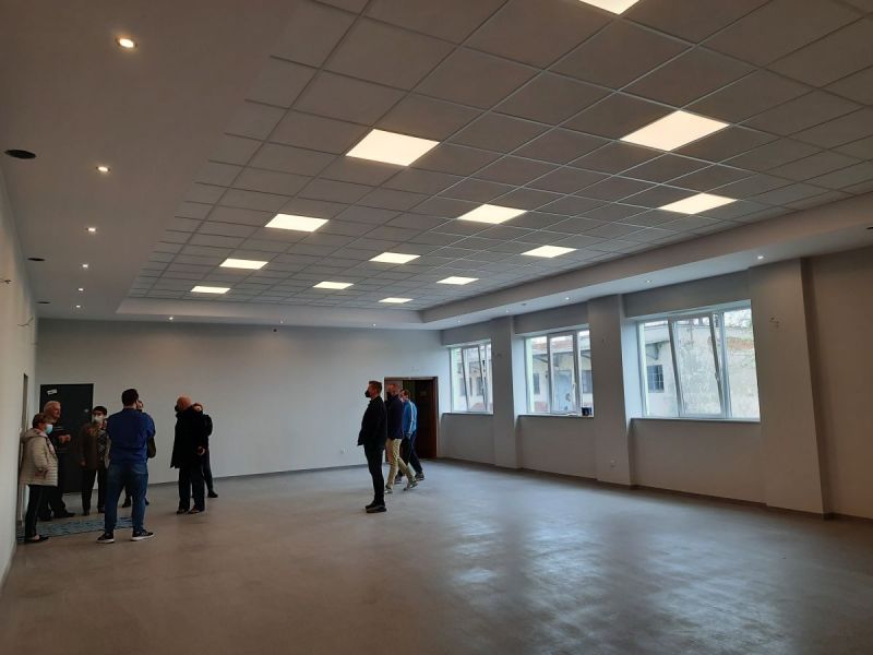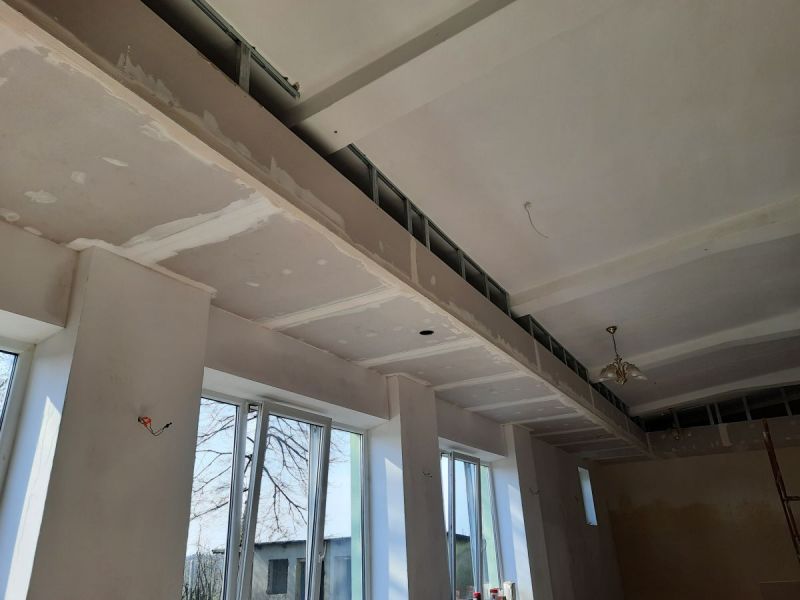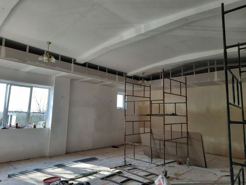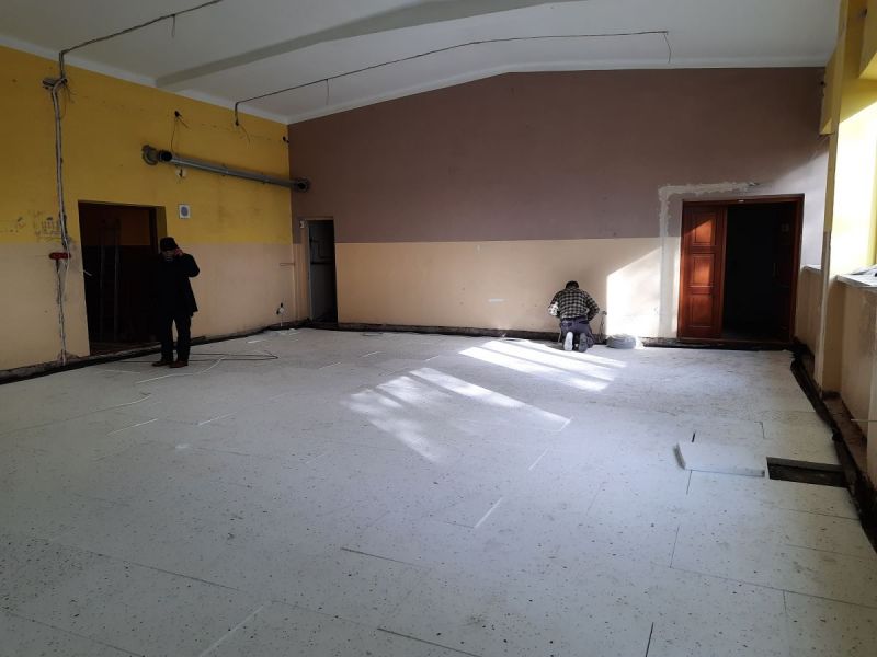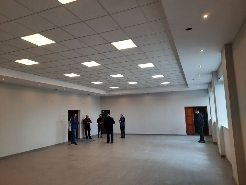W ramach zadania remontowi zostały poddane ściany i sufit sali balowej w budynku. Ze ścian zostały usunięte stare farby, nałożono nowe tynki i gładź oraz farbę, zostały zamontowane listwy przypodłogowe. Został również wykonany sufit podwieszany wraz z nowoczesnym oświetleniem.
