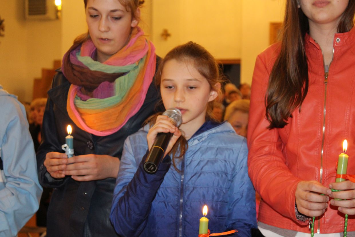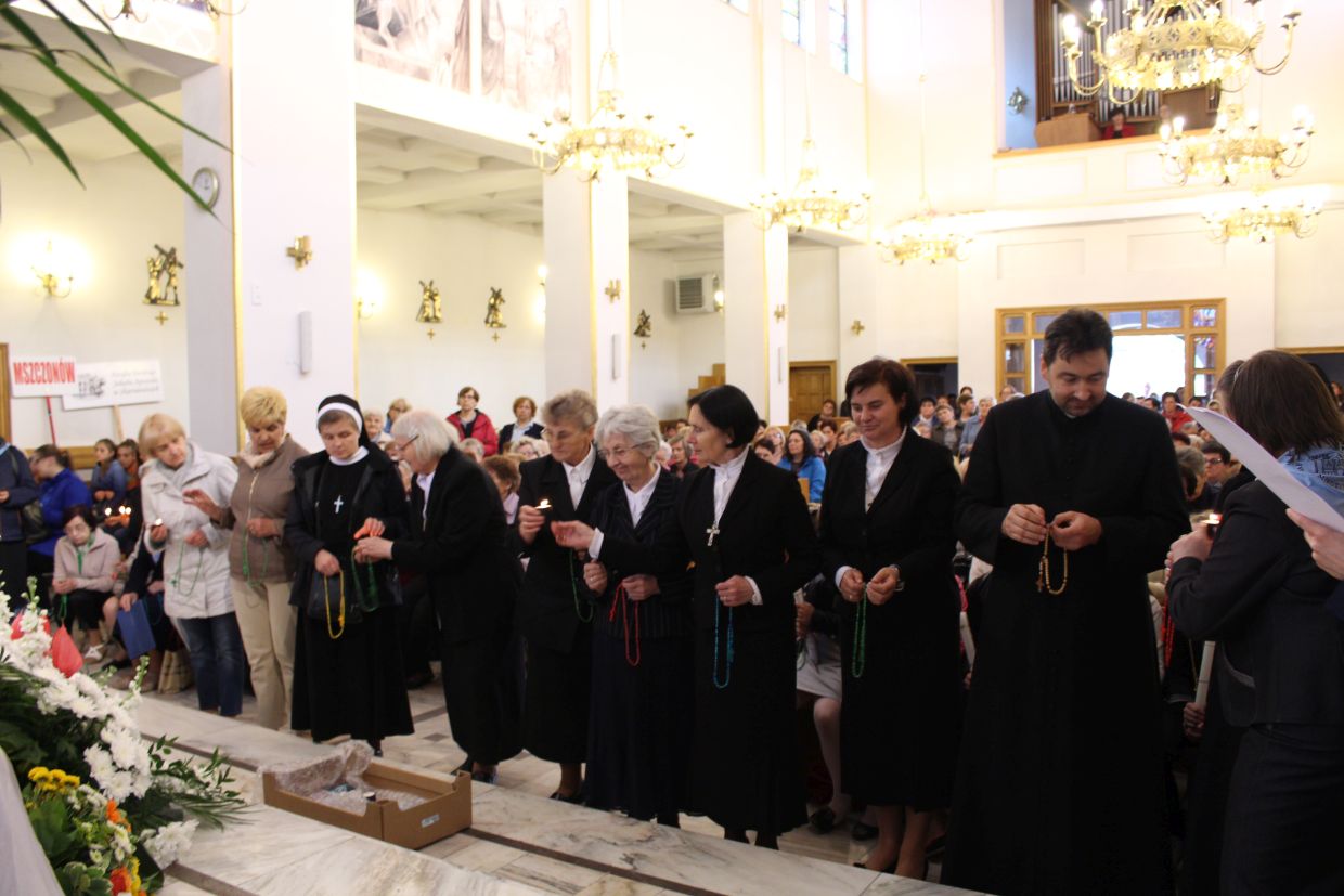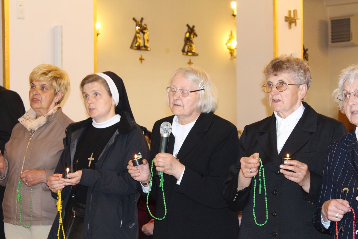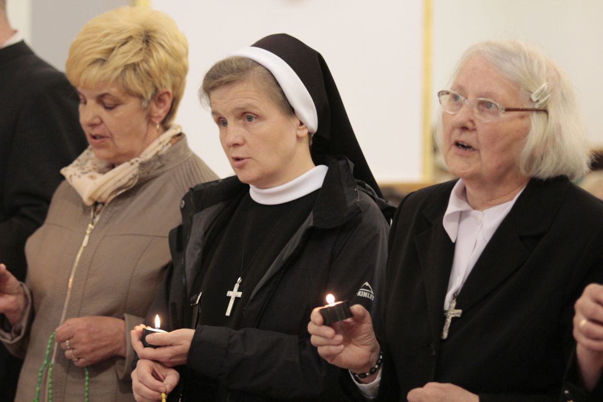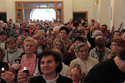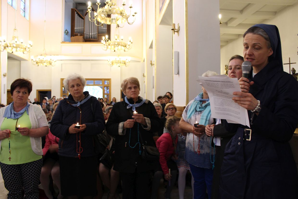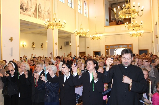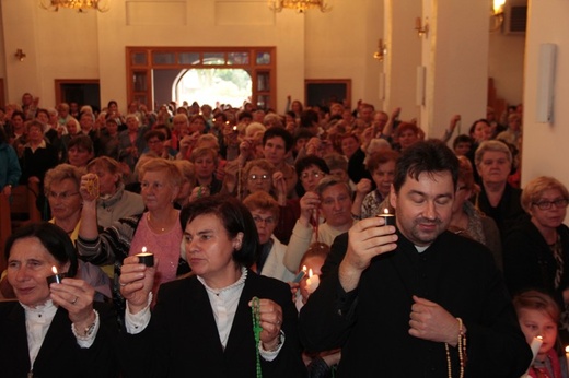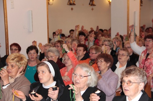 Różaniec zakończył się modlitwą "Pod Twoją obronę" z uniesionymi do góry paciorkami i zapalonymi świeczkami.