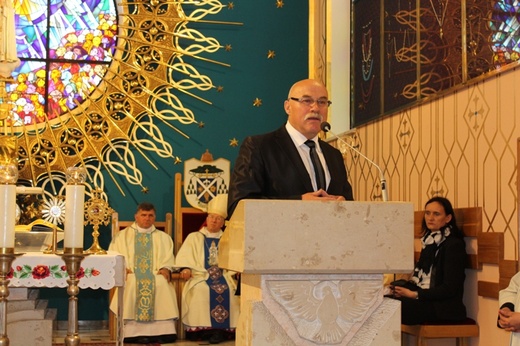 - Witam księdza biskupa, Panie z diecezji łowickiej, a także nasze kobiety z parafii Mąkolice. Z poszanowaniem godności, tytułów i stanowisk wszystkich Państwa. Jestem zaszczycony i dumny, że możemy Was gościć w naszym Mąkolskim Sanktuarium, w Gminie Głowno. Cieszę się, że tyle Was tu przyjechało, że jesteście razem. Dzisiaj w dobie e-maili, sms-ów, ludzie coraz mniej rozmawiają bezpośrednio ze sobą, a przecież przez smsy nie słyszy się bicia serca drugiego człowieka, nie spojrzy się sobie w oczy. Dziękuję Wam, za to, że jesteście. Spotykajcie się, bo warto. Przykład Mąkolickiej parafii, tylko 1100 dusz, jak mówił ś. p. ksiądz Krysik, zrobiło tak wiele budując sanktuarium, razem można więcej. Spotykajcie się, niech nie zarastają ścieżki do sąsiada.