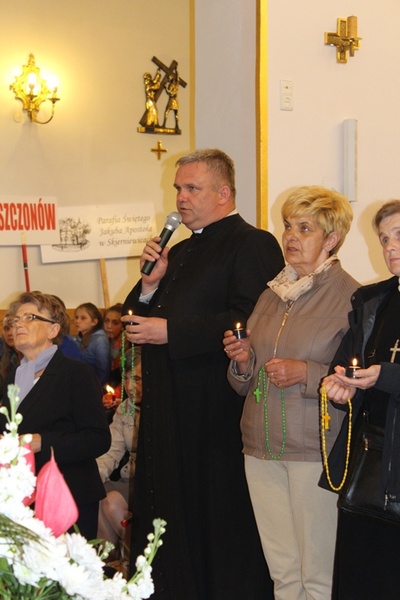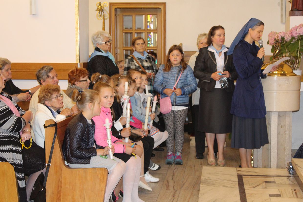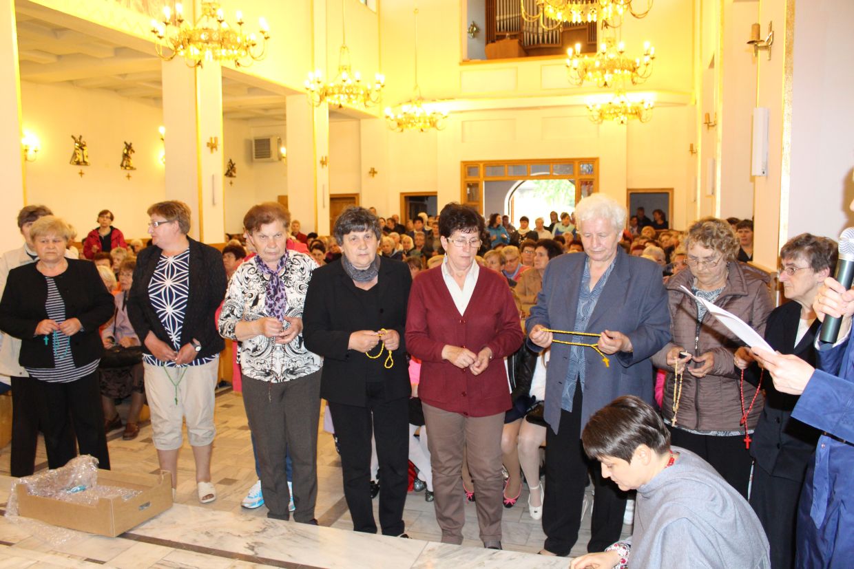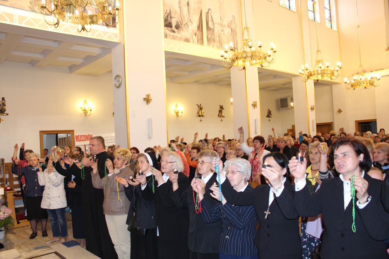 Każdą z dziesiątek odmawiała inna grupa - od dzieci z miejscowych szkół, przez parafianki z Bełchowa (które - mimo że miały parafialny odpust w tym dniu - przyjechały modlić się z pątniczkami do Mąkolic) oraz z Międzyborowa (które od początku wiernie jeżdżą na każdą pielgrzymkę diecezjalną kobiet), po kapłanów i osoby konsekrowane. Przy każdym "Zdrowaś, Maryjo" w prezbiterium zapalana była jedna świeczka.
