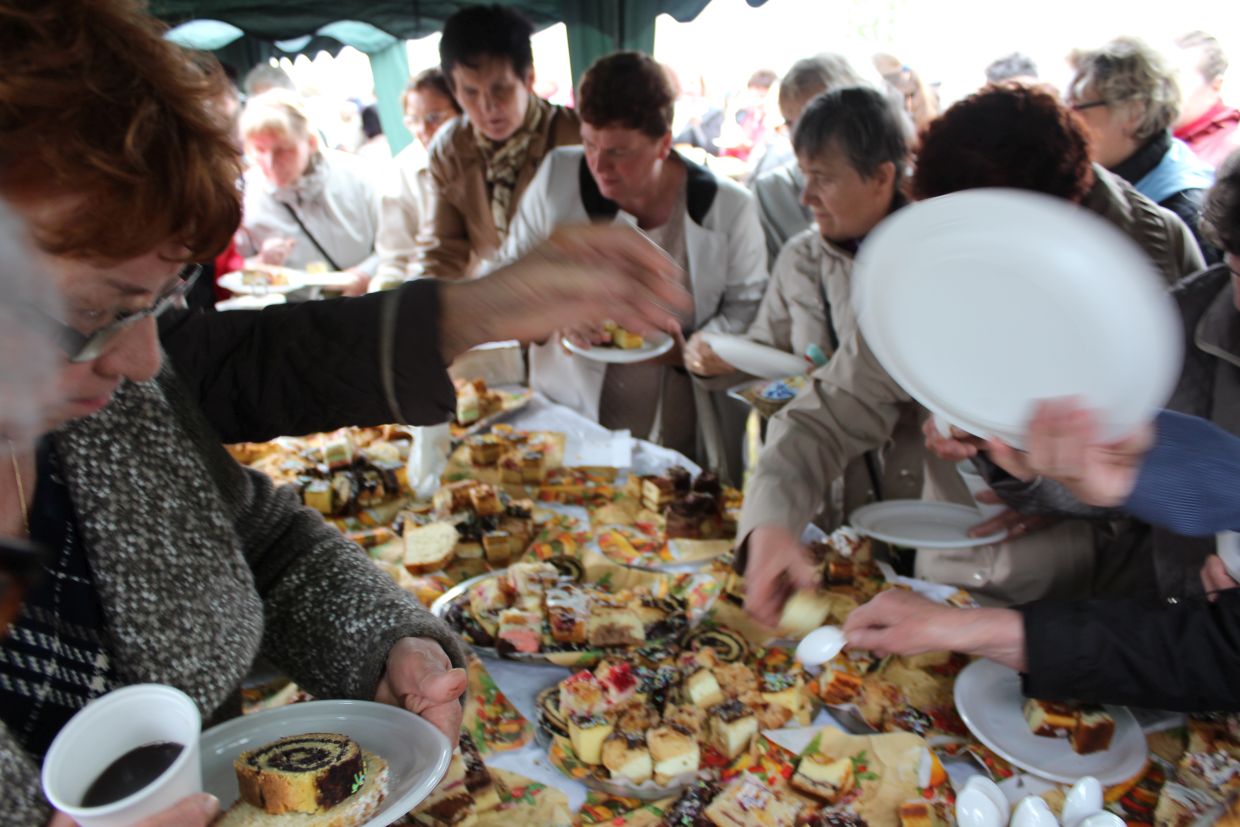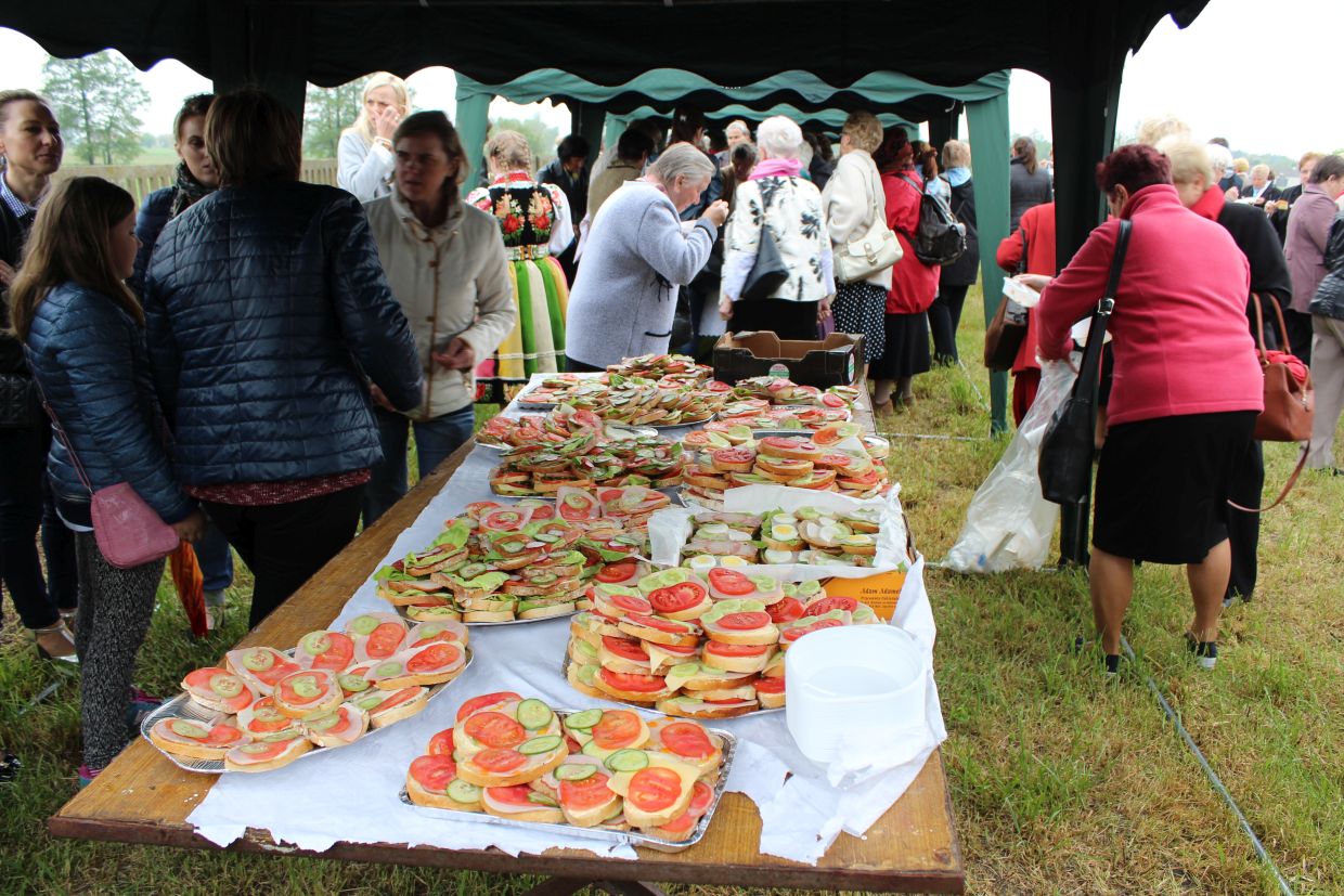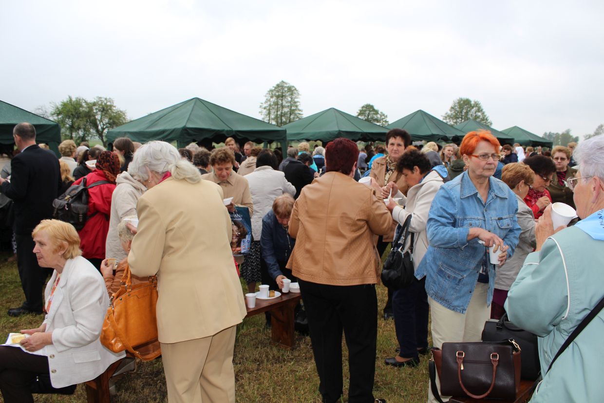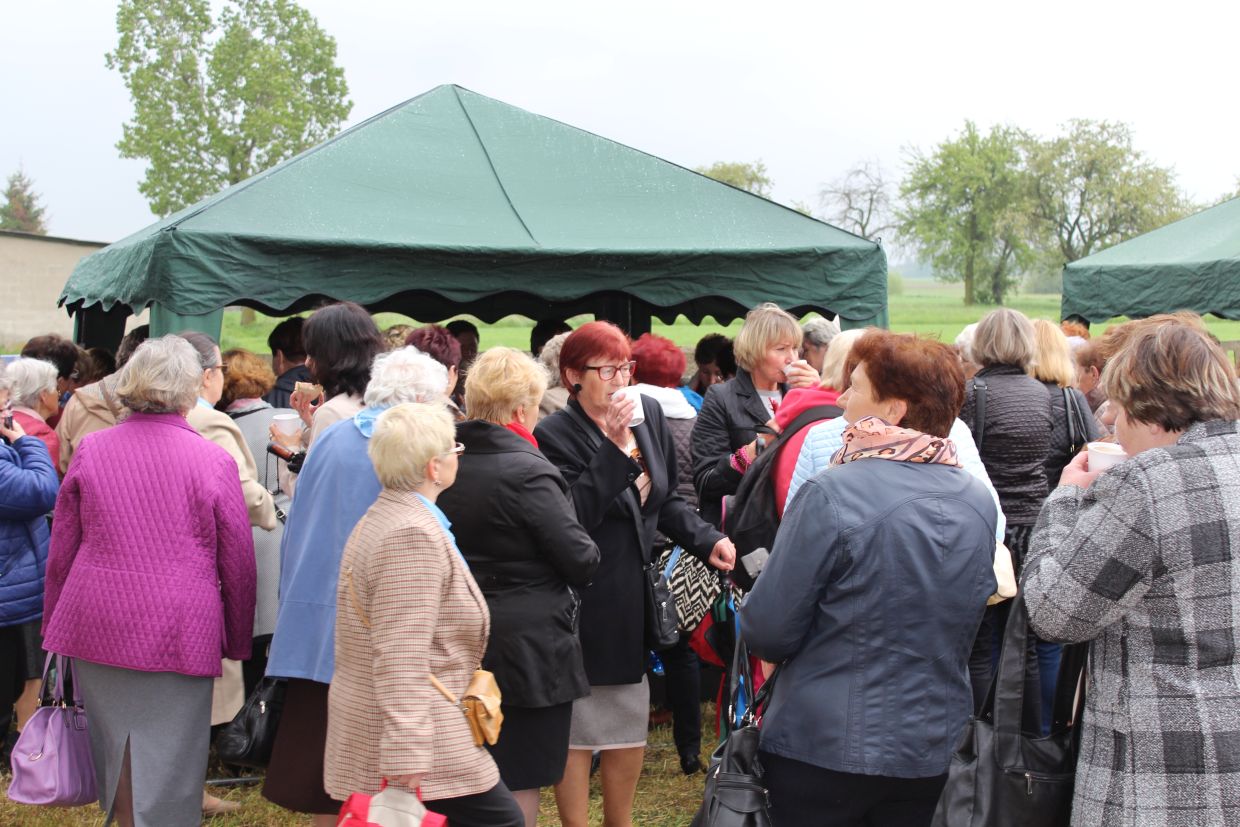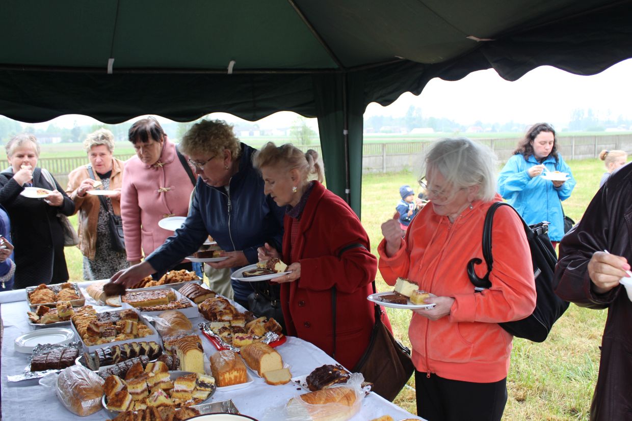 Następnie hojni parafianie z Mąkolic zaprosili uczestniczki pielgrzymki na pyszny poczęstunek na łące za plebanią. Były kotlety, bigos, kanapki, przeróżne ciasta oraz kawa i herbata.