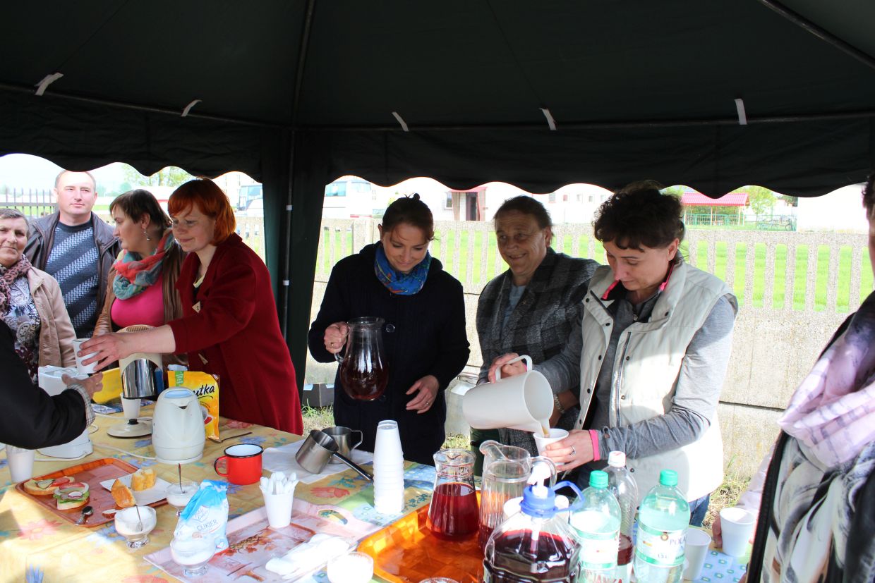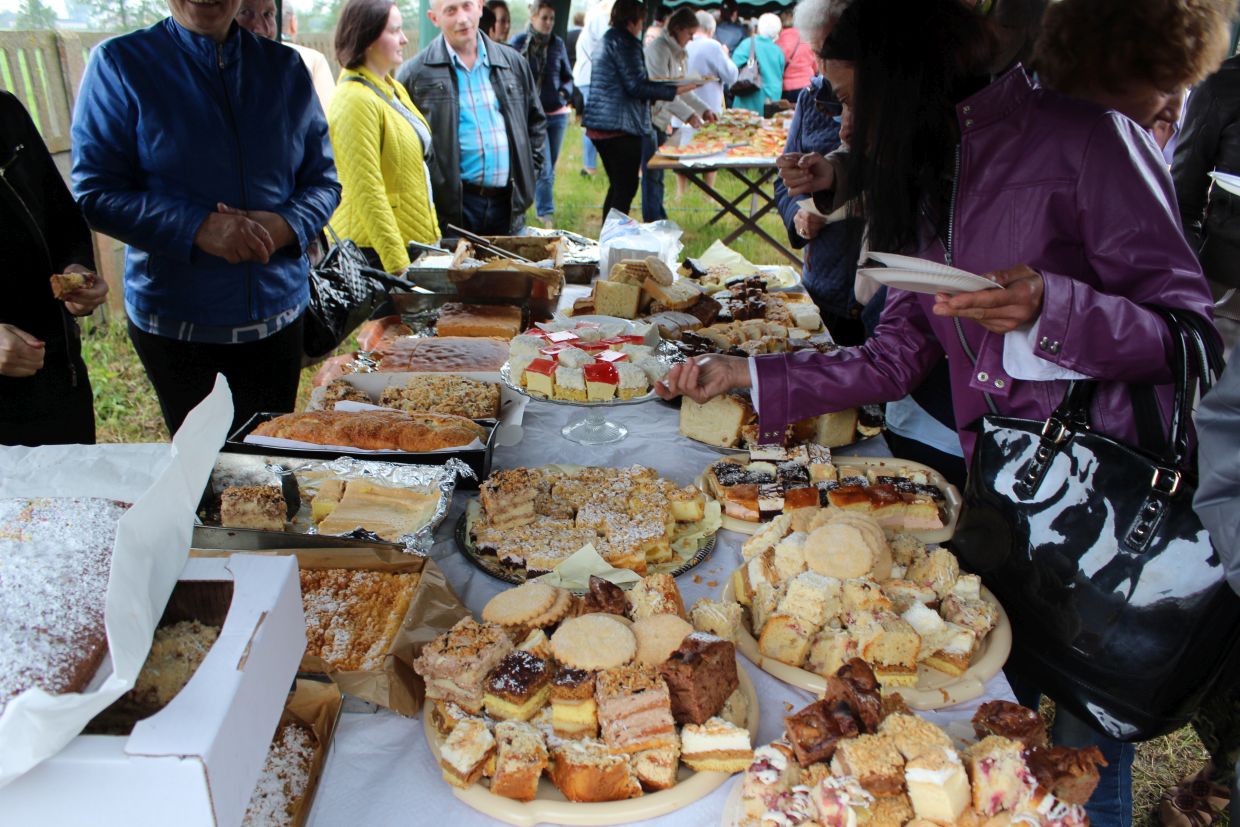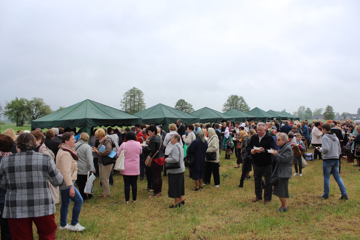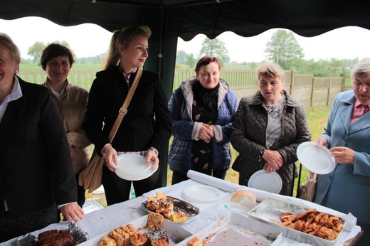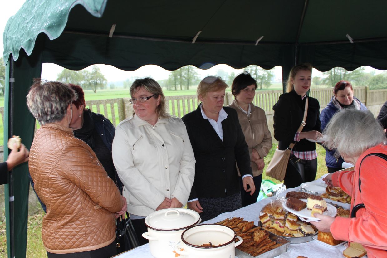 Następnie hojni parafianie z Mąkolic zaprosili uczestniczki pielgrzymki na pyszny poczęstunek na łące za plebanią. Były kotlety, bigos, kanapki, przeróżne ciasta oraz kawa i herbata.