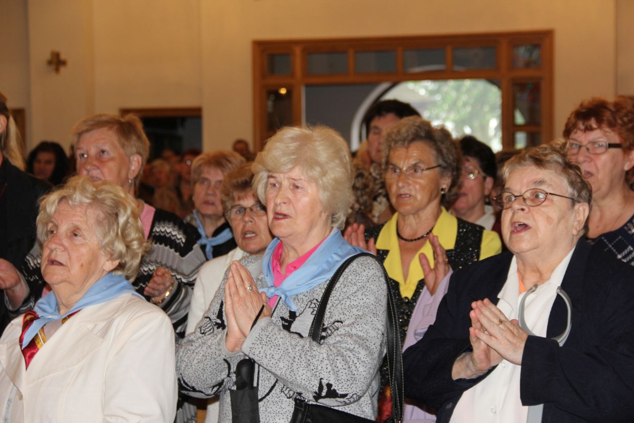 Po konferencji był czas na indywidualną modlitwę, przygotowanie do Eucharystii i uczczenie stojących na ołtarzu relikwii świętych i błogosławionych kobiet. Mszę św. w południe odprawił bp Andrzej F. Dziuba, ordynariusz łowicki. W homilii nawiązał m.in. do historii mąkolickiej parafii, a także do niedawnej 35. rocznicy zamachu na św. Jana Pawła II i do Matki Bożej Fatimskiej.