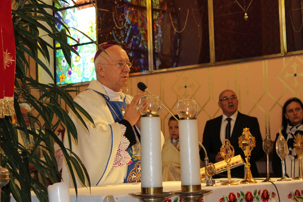 - Radujemy się, że nasza diecezja ma ten Boży dom. Jakże to wymowne jest, że tu, w Mąkolicach, spotyka się starożytna historia drewnianego kościoła oraz tego młodego sanktuarium. Ale my kierujemy się ku przyszłości. Chcemy odczytywać wolę Bożą z pomocą Matki Bożej Fatimskiej. Dziękujemy Jej, że wybrała to miejsce i że gromadzi tu pielgrzymów, m.in. was. Dziękujemy za "Miriam, która wie najlepiej", że możemy z Nią odczytywać nasze powołanie i widzieć w Niej niedościgniony wzór podążania za wolą Bożą - mówił w homilii bp Dziuba.