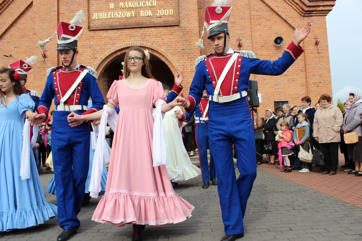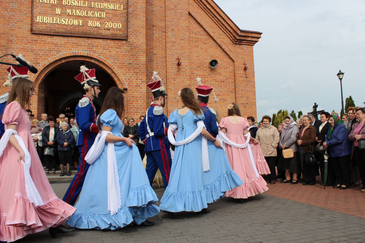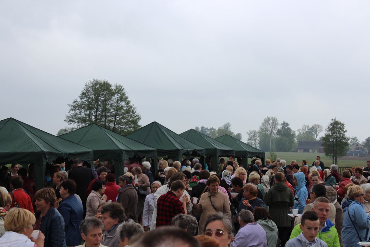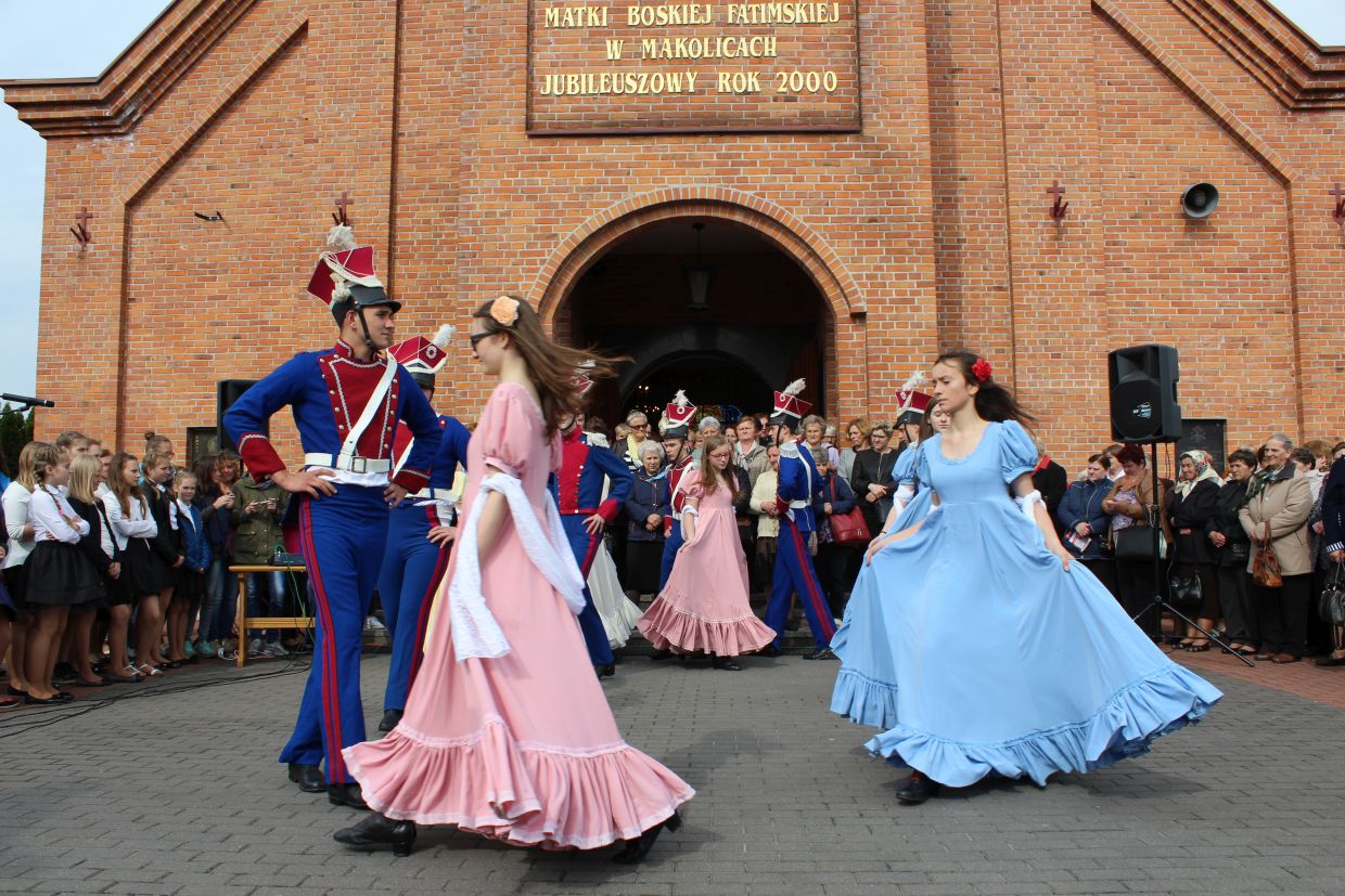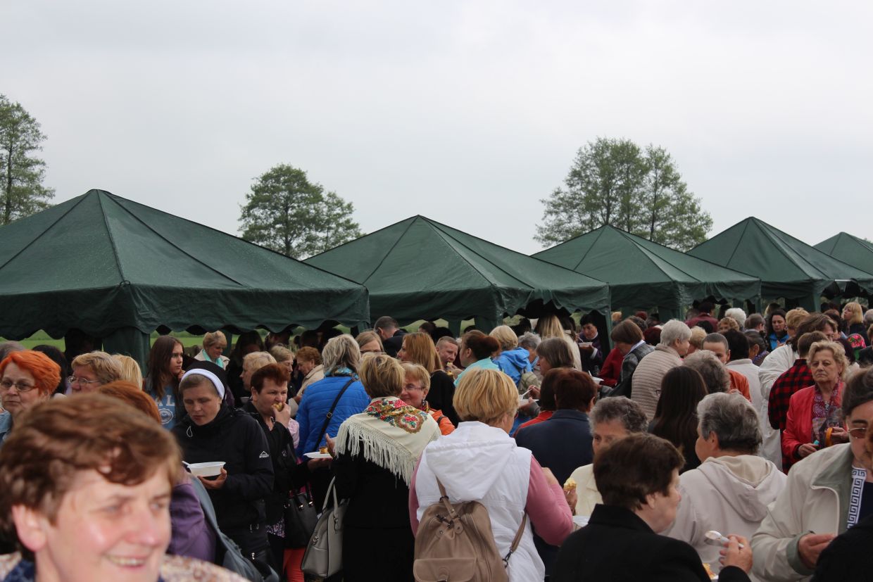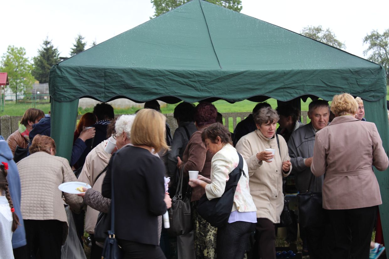 Później przed kościołem rozpoczęły się występy folklorystyczne uczniów miejscowej szkoły z Mąkolic. Parafianie zaprosili swoich gości na kolejny posiłek - grochówkę z wojskowego kotła, kanapki i ciasta.