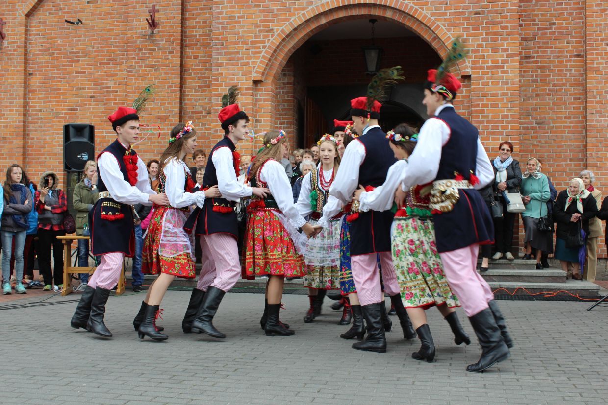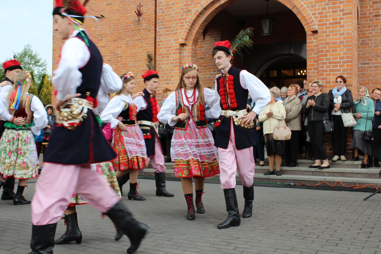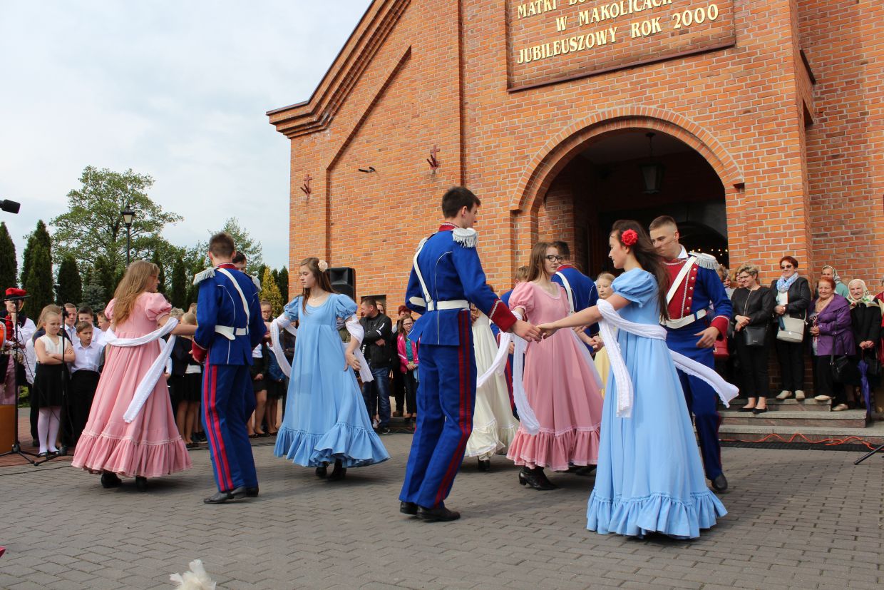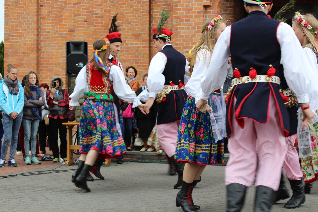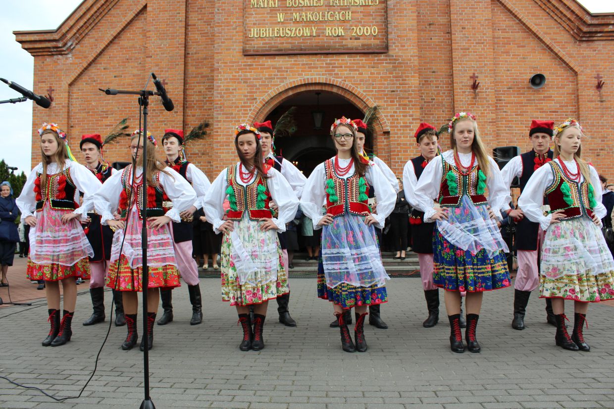 Później przed kościołem rozpoczęły się występy folklorystyczne uczniów miejscowej szkoły z Mąkolic. Parafianie zaprosili swoich gości na kolejny posiłek - grochówkę z wojskowego kotła, kanapki i ciasta.