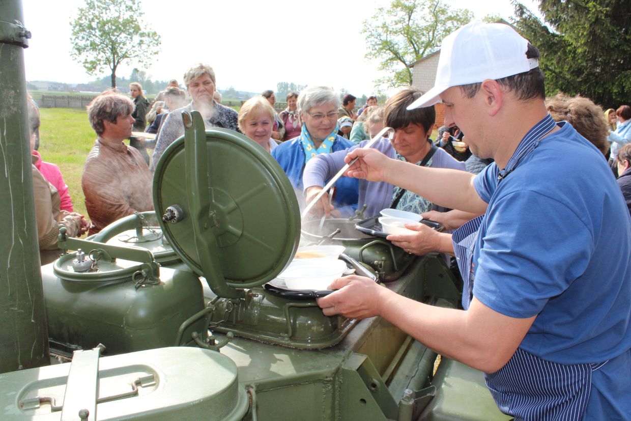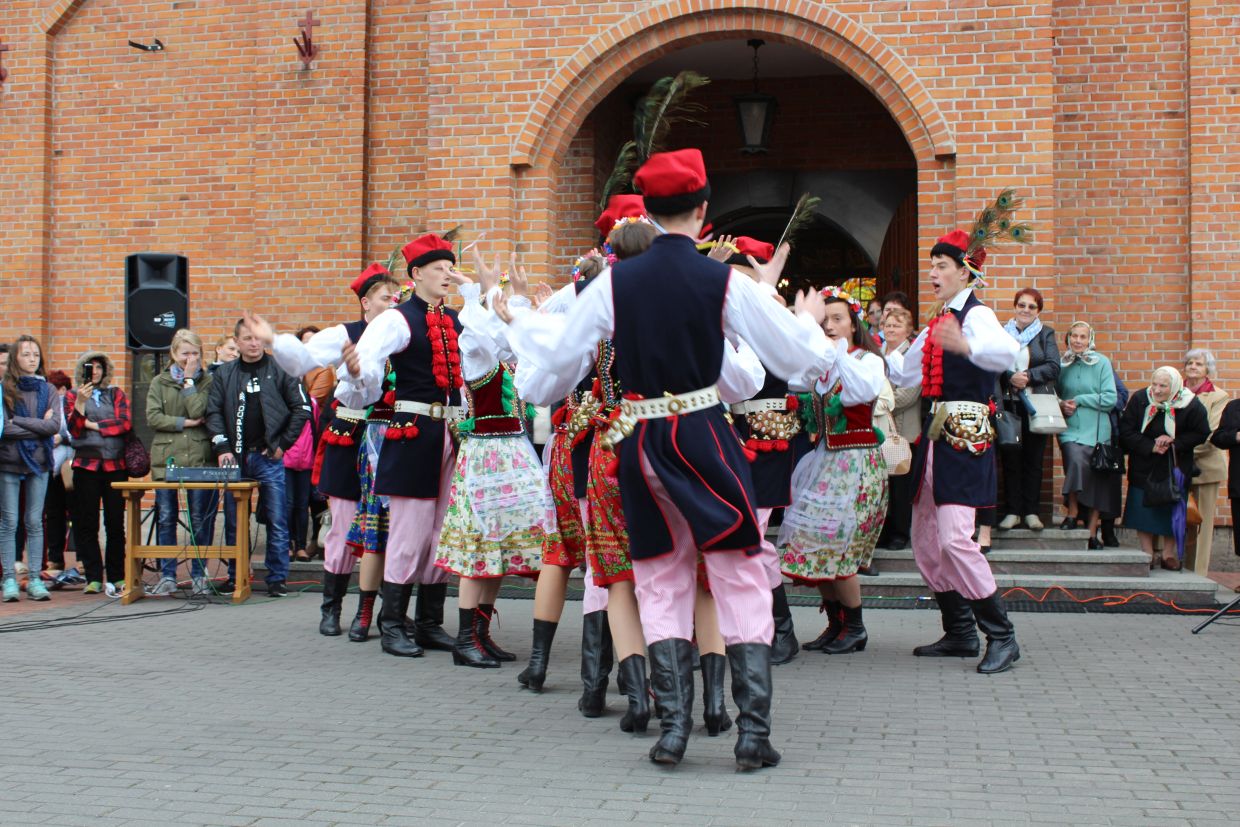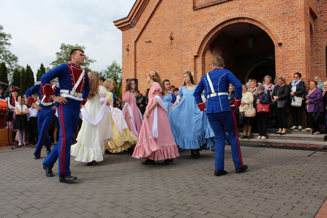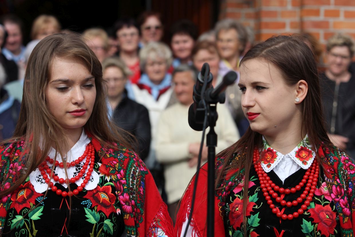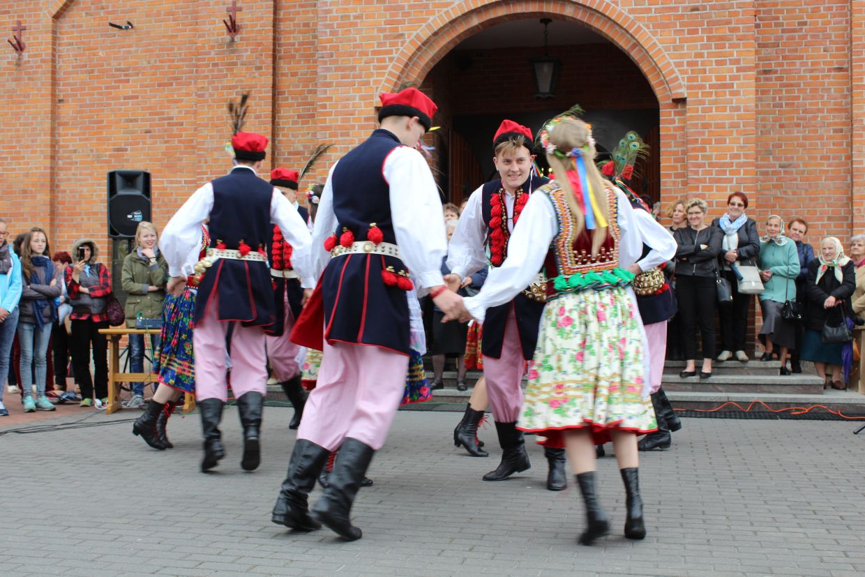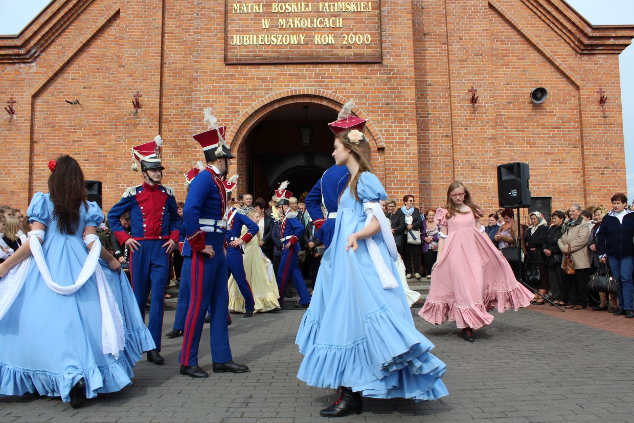 Później przed kościołem rozpoczęły się występy folklorystyczne uczniów miejscowej szkoły z Mąkolic. Parafianie zaprosili swoich gości na kolejny posiłek - grochówkę z wojskowego kotła, kanapki i ciasta.