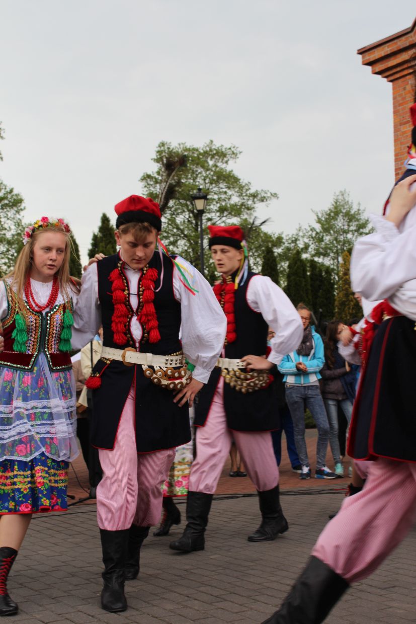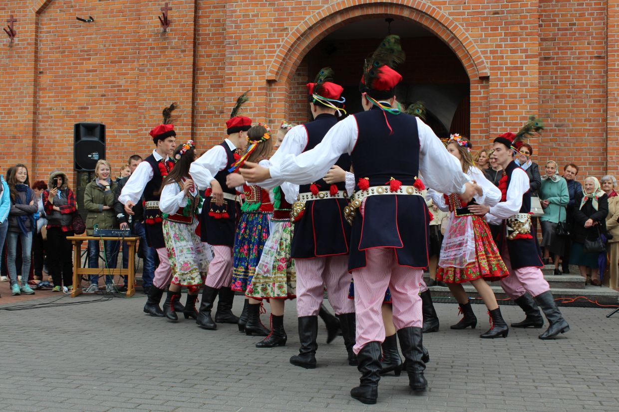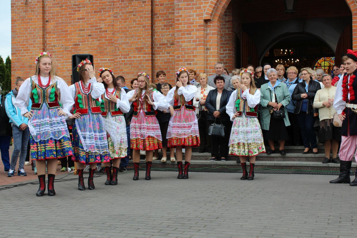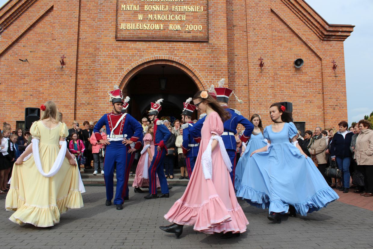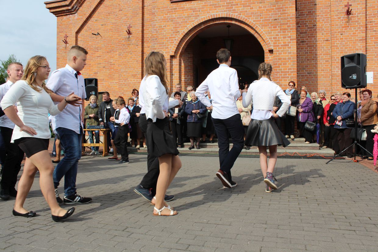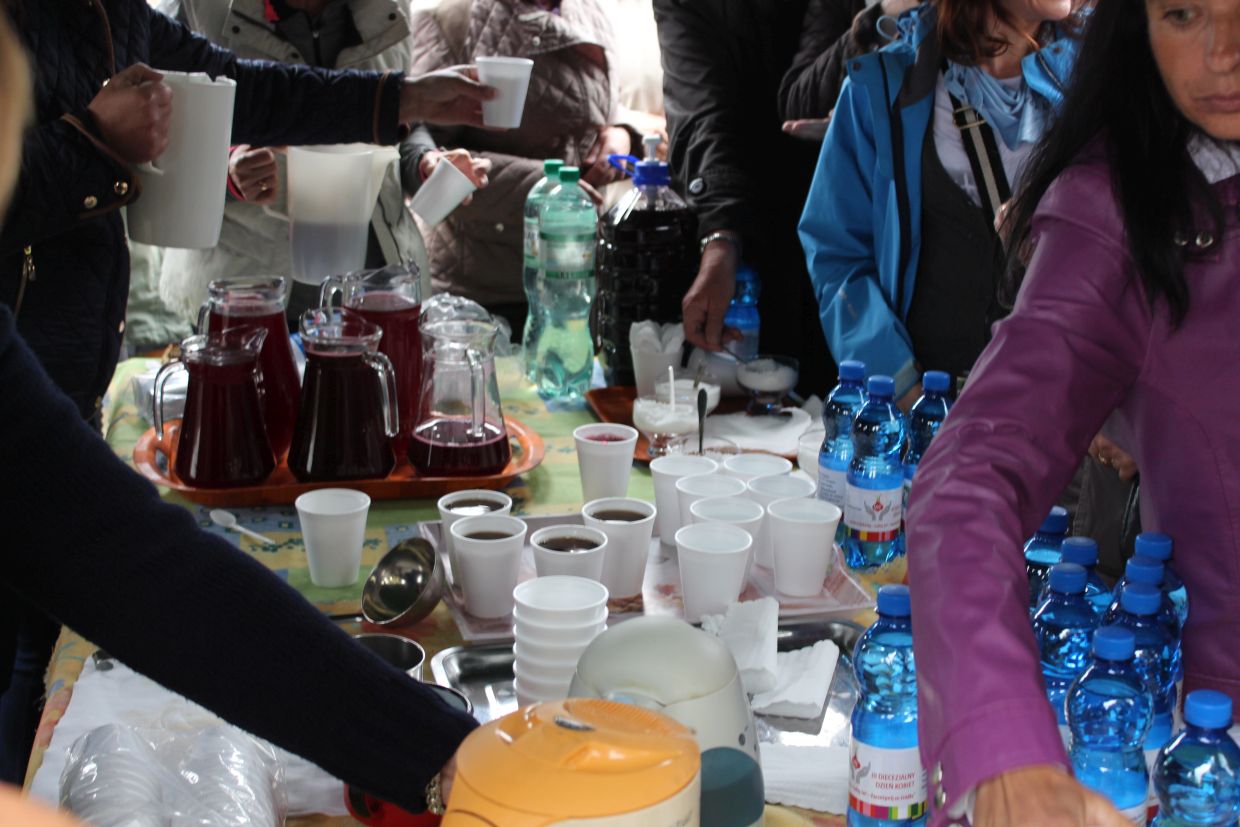 Później przed kościołem rozpoczęły się występy folklorystyczne uczniów miejscowej szkoły z Mąkolic. Parafianie zaprosili swoich gości na kolejny posiłek - grochówkę z wojskowego kotła, kanapki i ciasta.