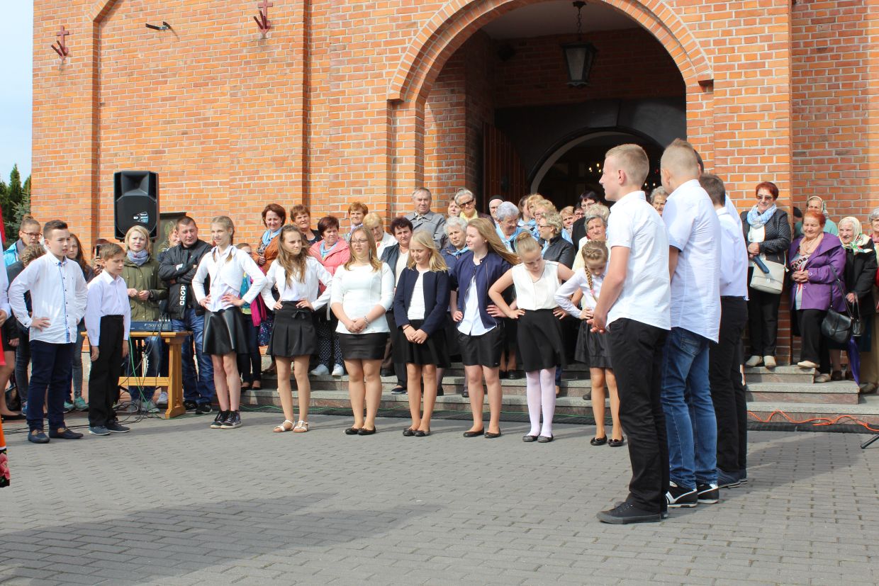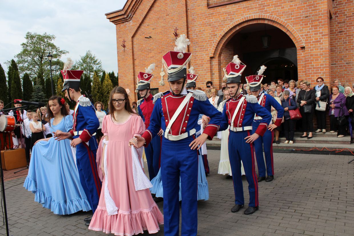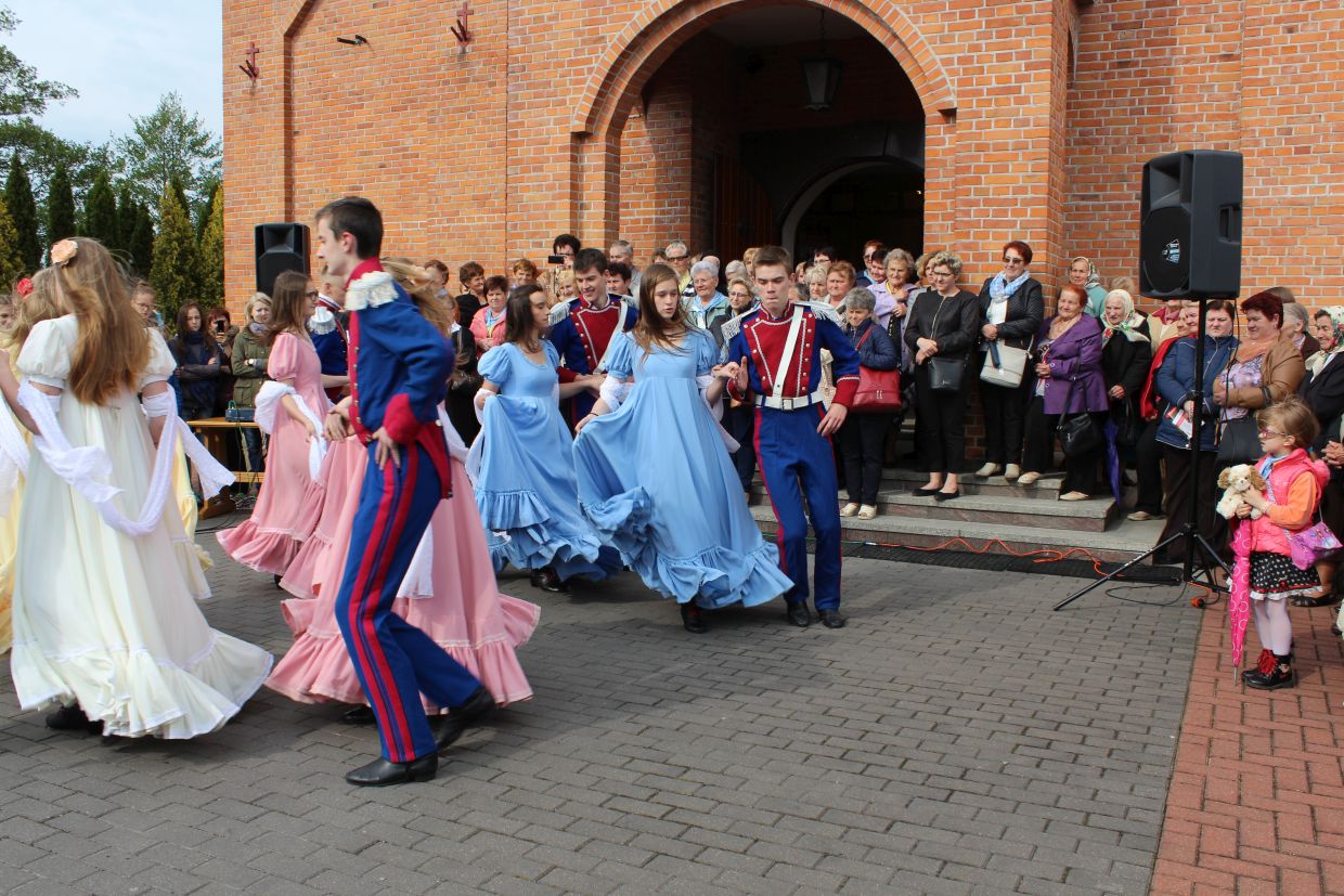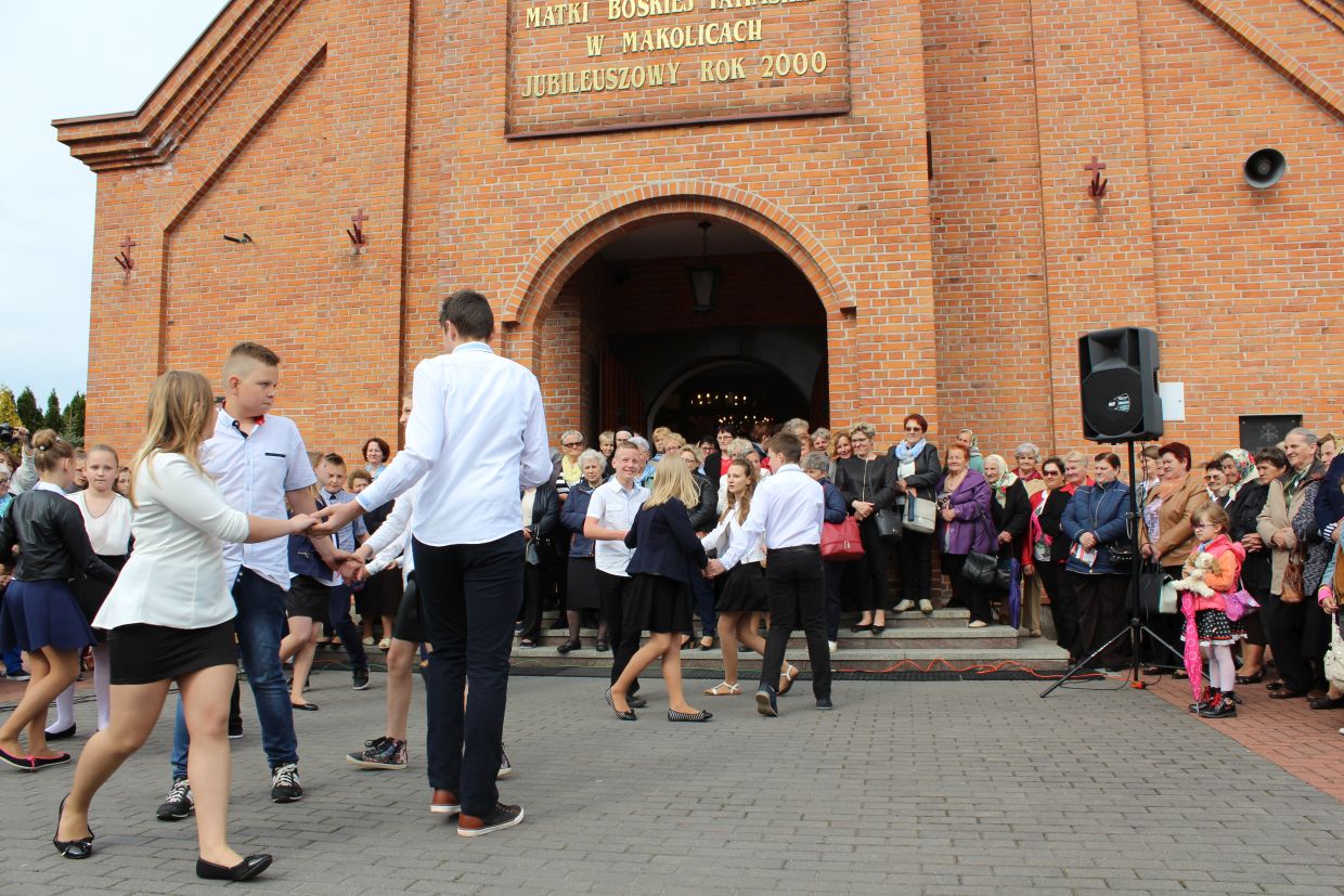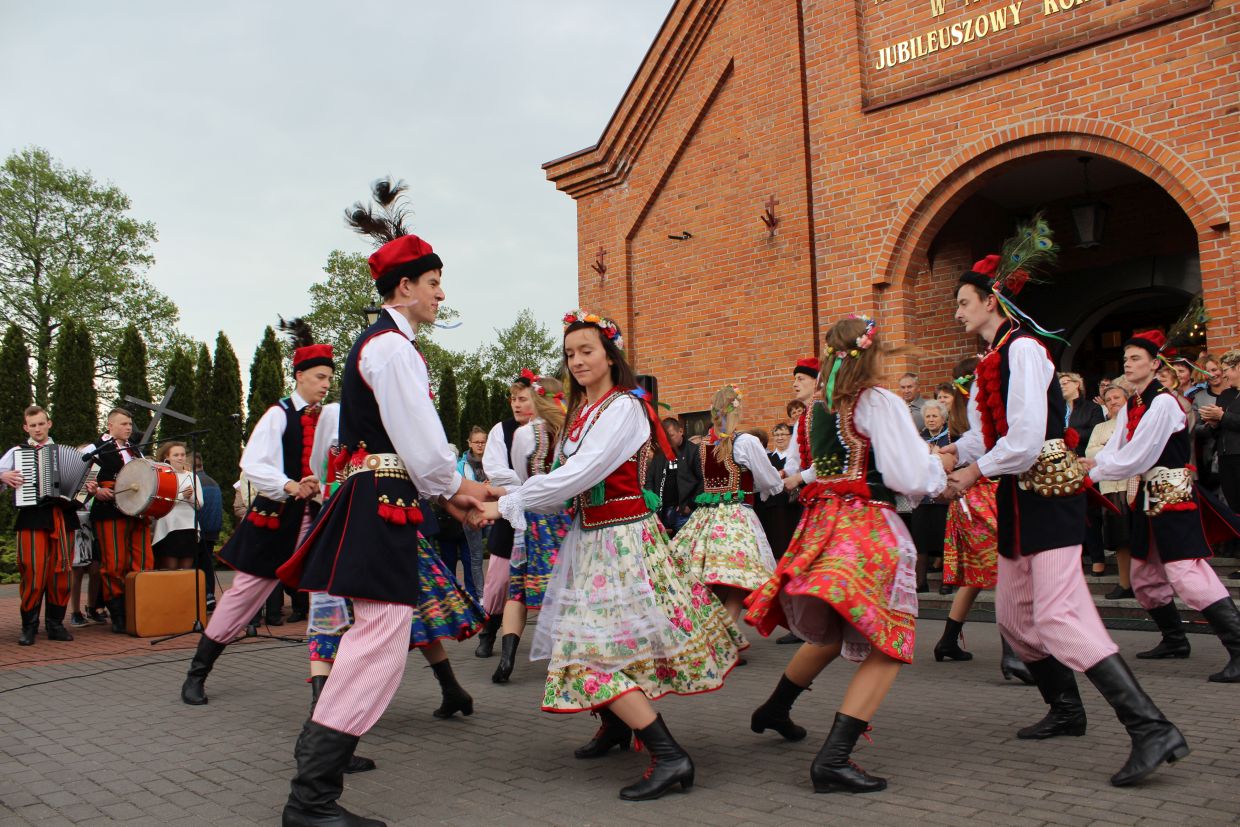 Później przed kościołem rozpoczęły się występy folklorystyczne uczniów miejscowej szkoły z Mąkolic. Parafianie zaprosili swoich gości na kolejny posiłek - grochówkę z wojskowego kotła, kanapki i ciasta.