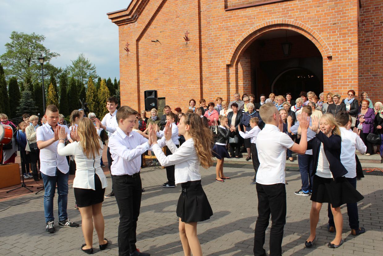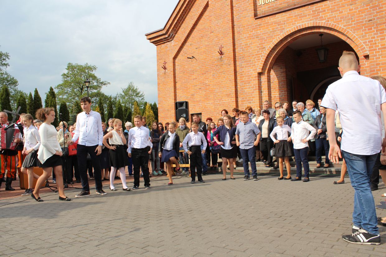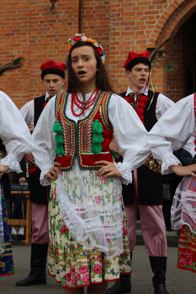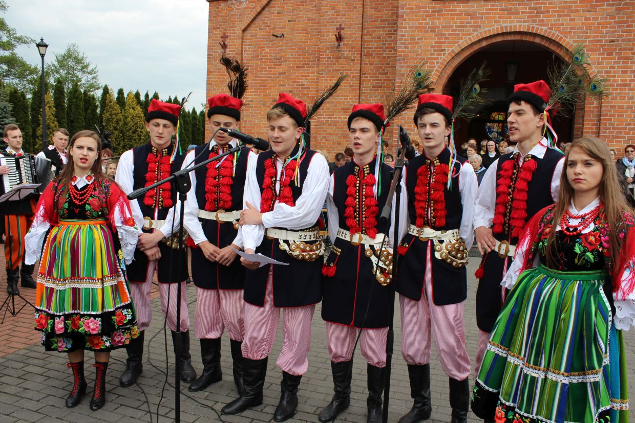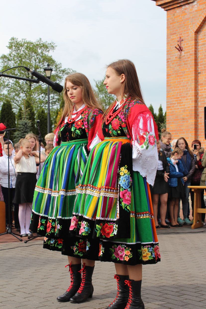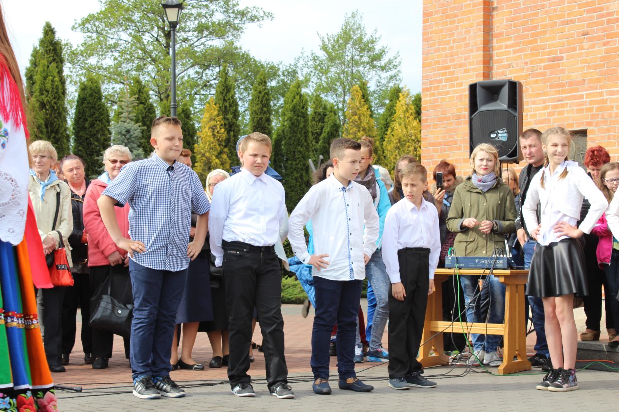 Później przed kościołem rozpoczęły się występy folklorystyczne uczniów miejscowej szkoły z Mąkolic. Parafianie zaprosili swoich gości na kolejny posiłek - grochówkę z wojskowego kotła, kanapki i ciasta.