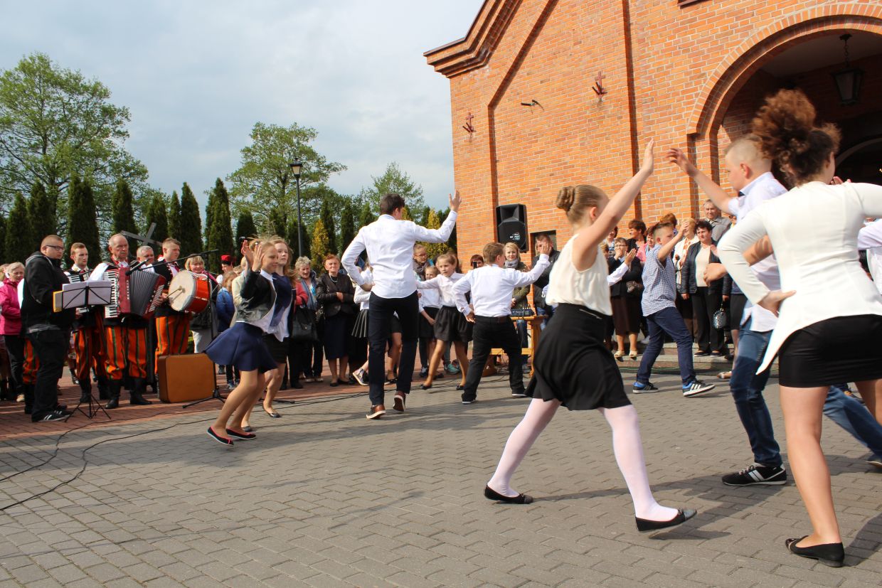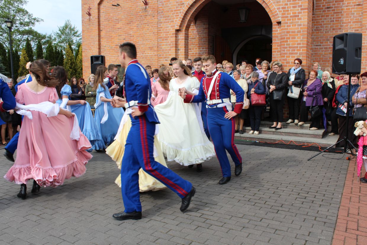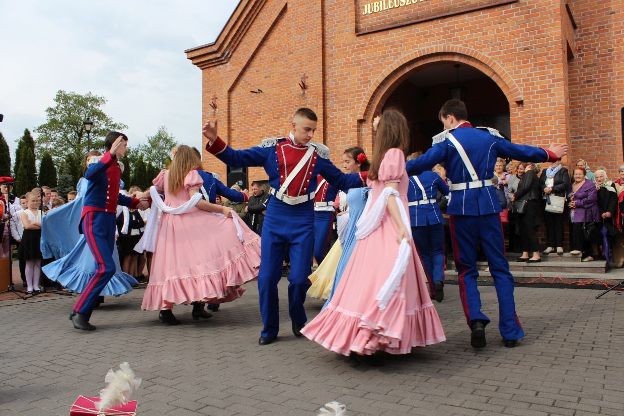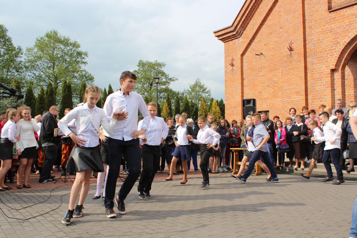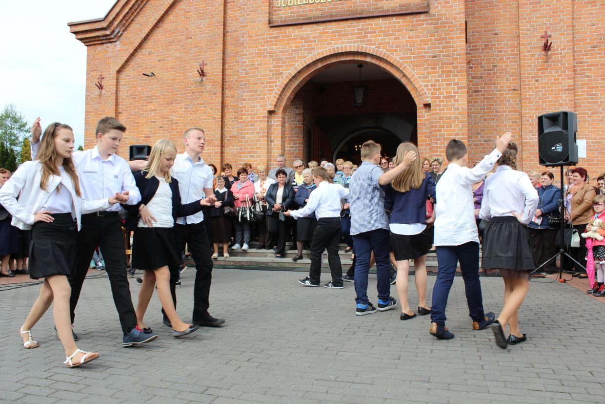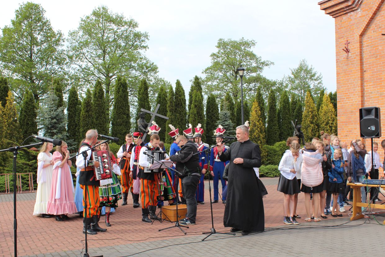 Później przed kościołem rozpoczęły się występy folklorystyczne uczniów miejscowej szkoły z Mąkolic. Parafianie zaprosili swoich gości na kolejny posiłek - grochówkę z wojskowego kotła, kanapki i ciasta.