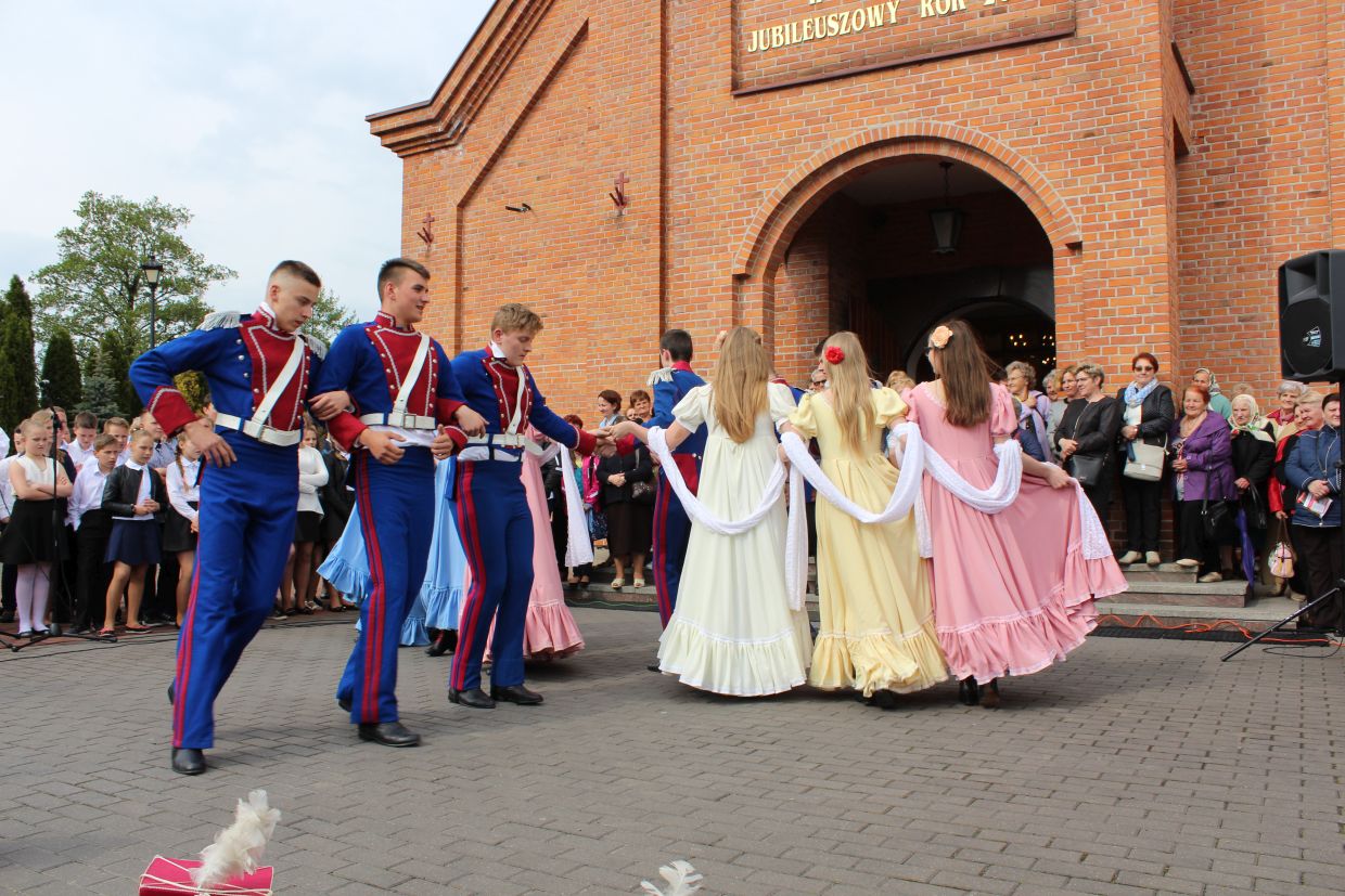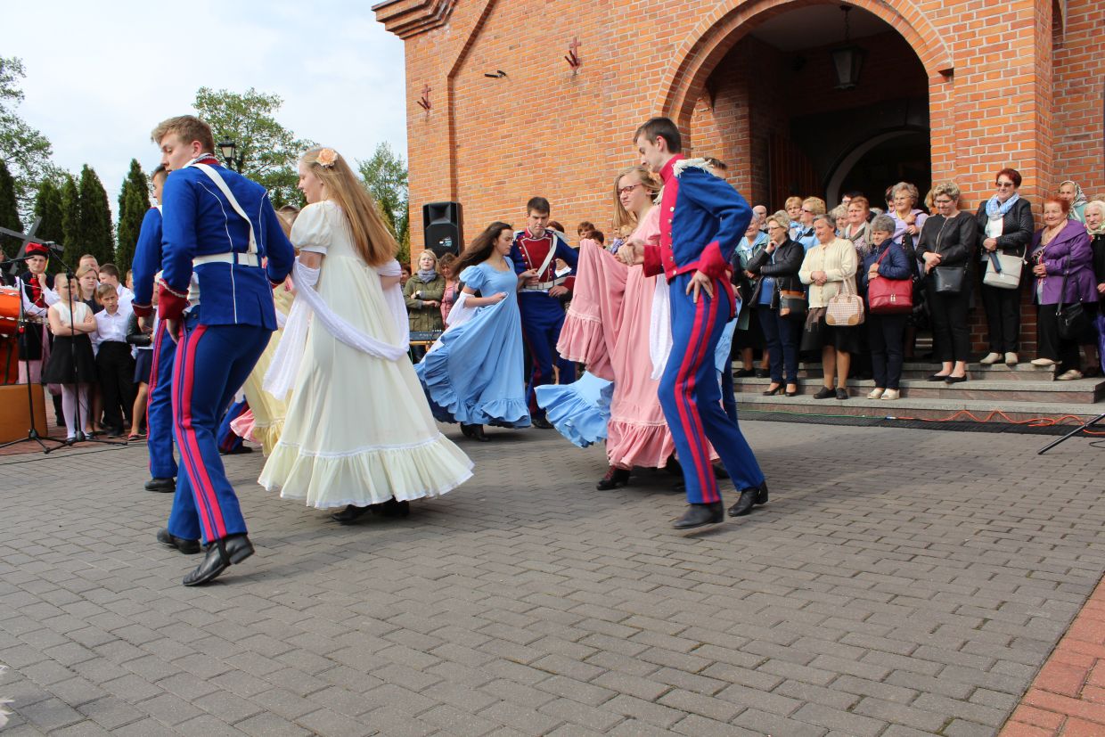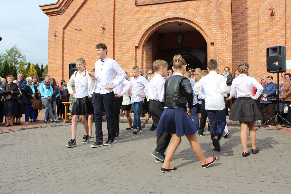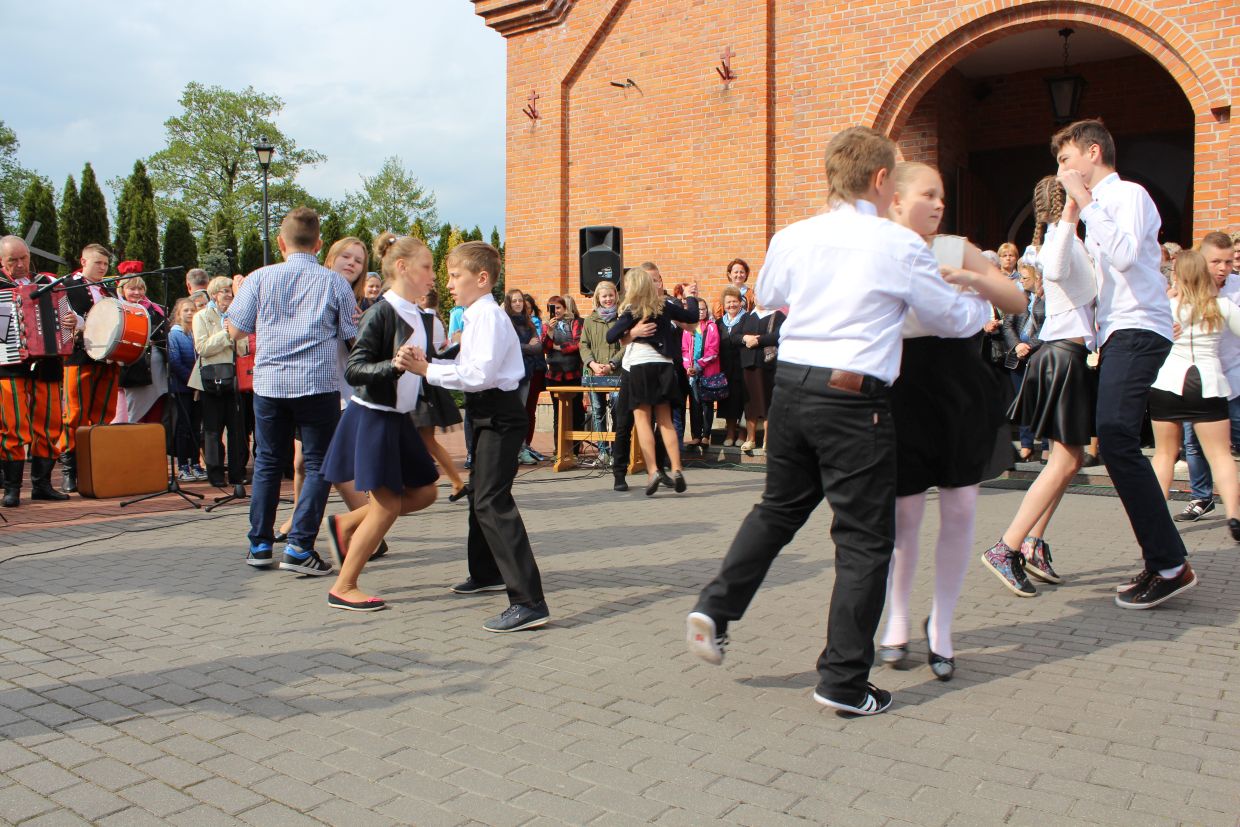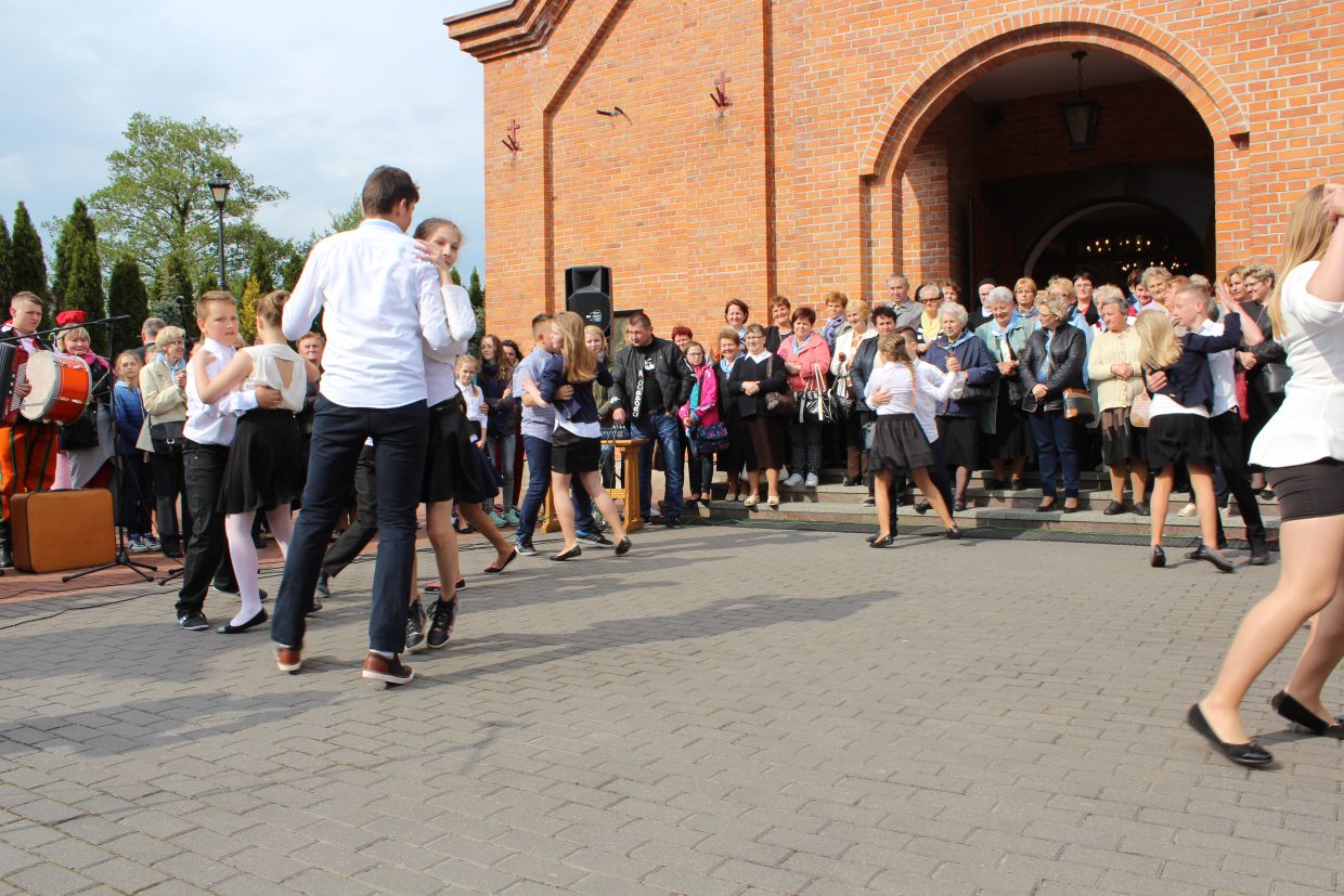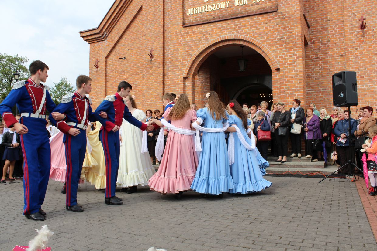 Później przed kościołem rozpoczęły się występy folklorystyczne uczniów miejscowej szkoły z Mąkolic. Parafianie zaprosili swoich gości na kolejny posiłek - grochówkę z wojskowego kotła, kanapki i ciasta.