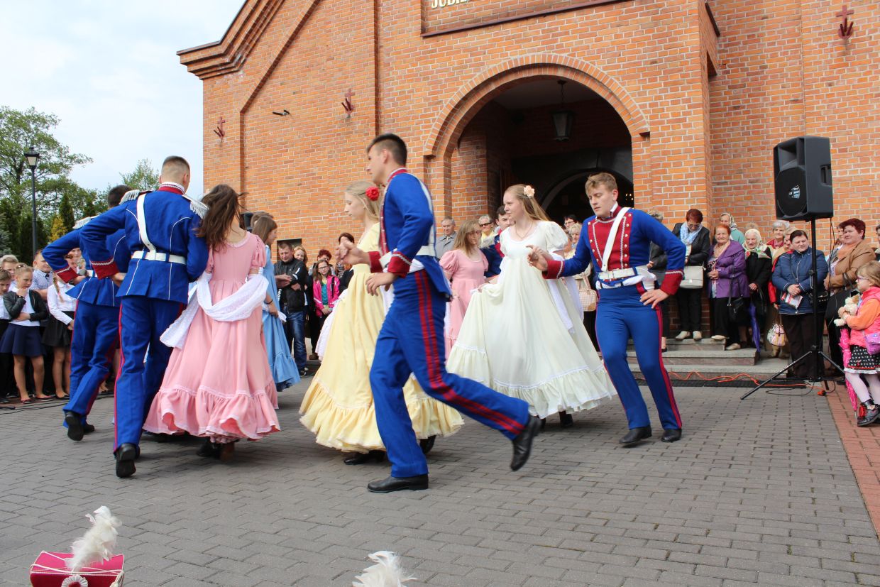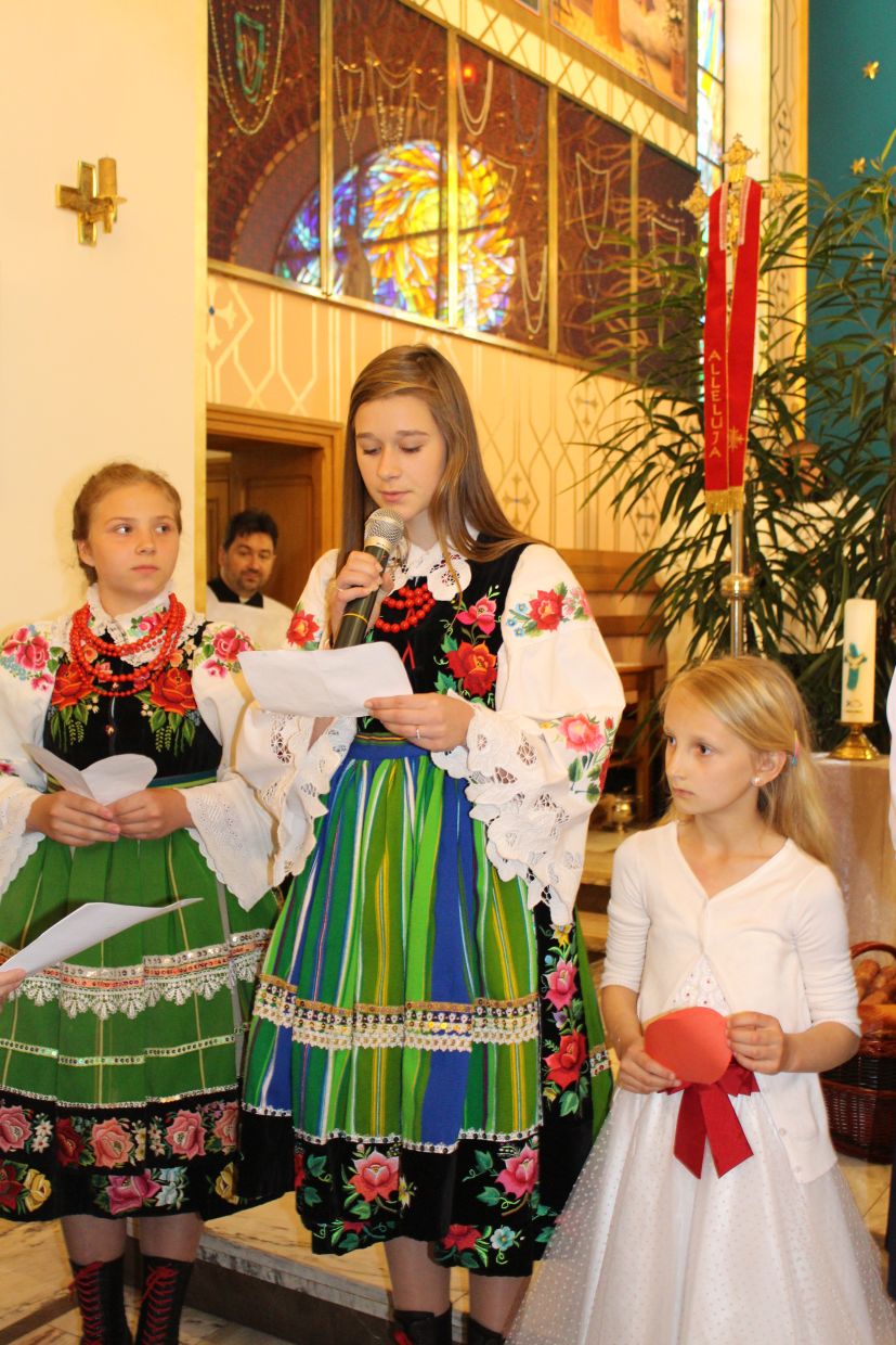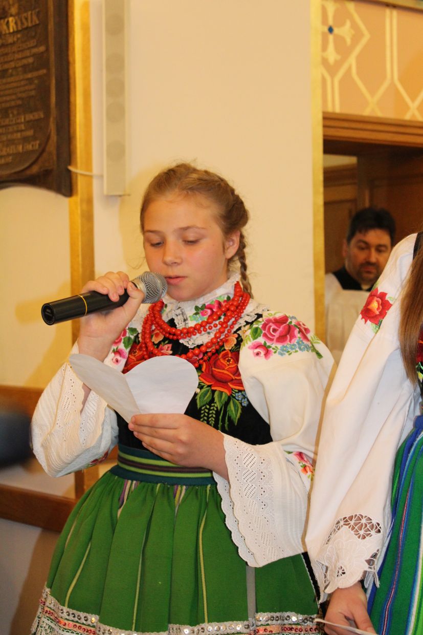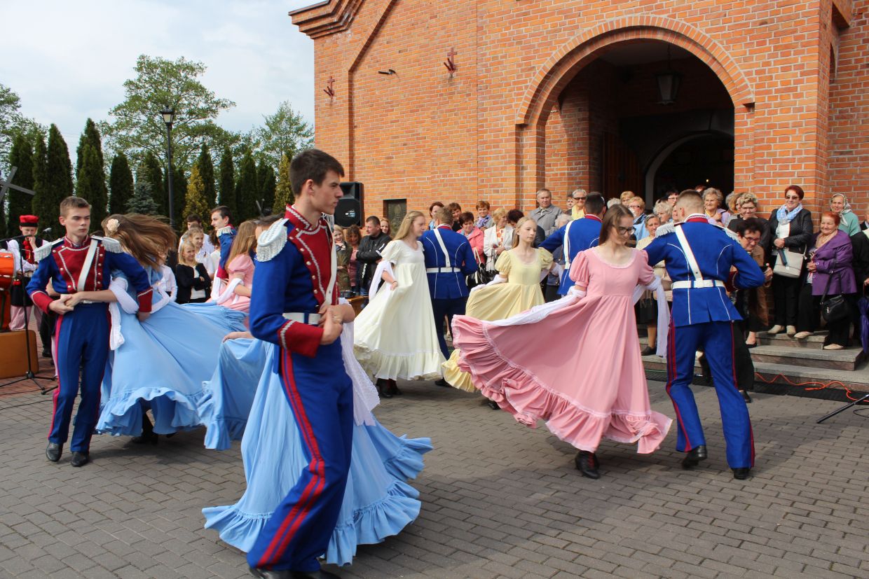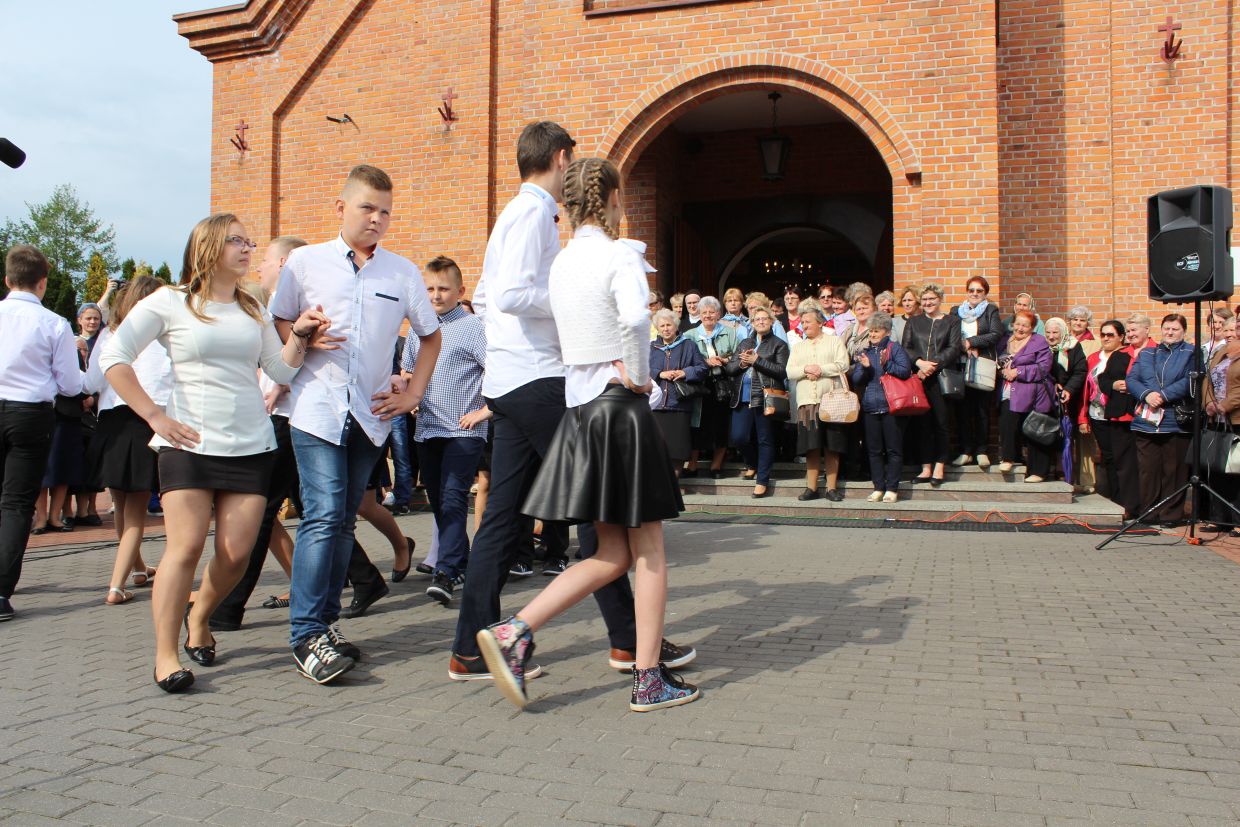 Później przed kościołem rozpoczęły się występy folklorystyczne uczniów miejscowej szkoły z Mąkolic. Parafianie zaprosili swoich gości na kolejny posiłek - grochówkę z wojskowego kotła, kanapki i ciasta.