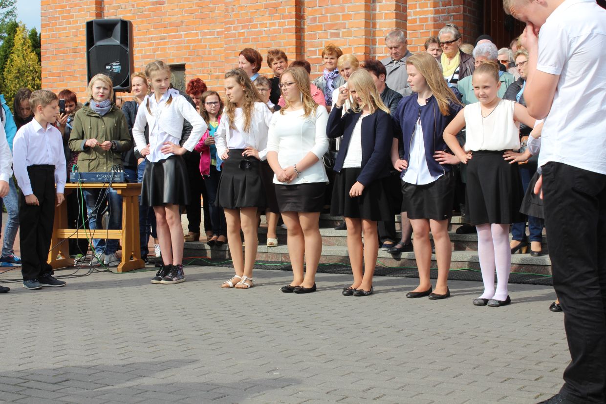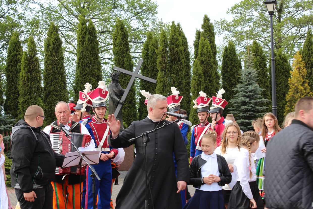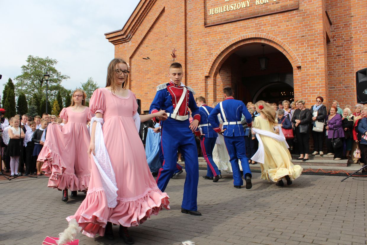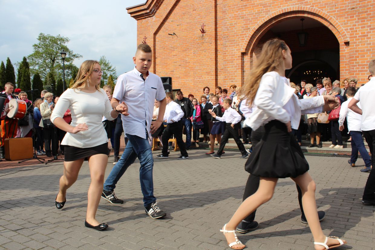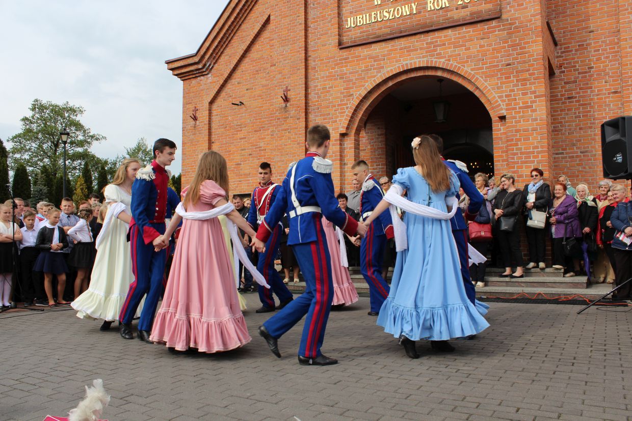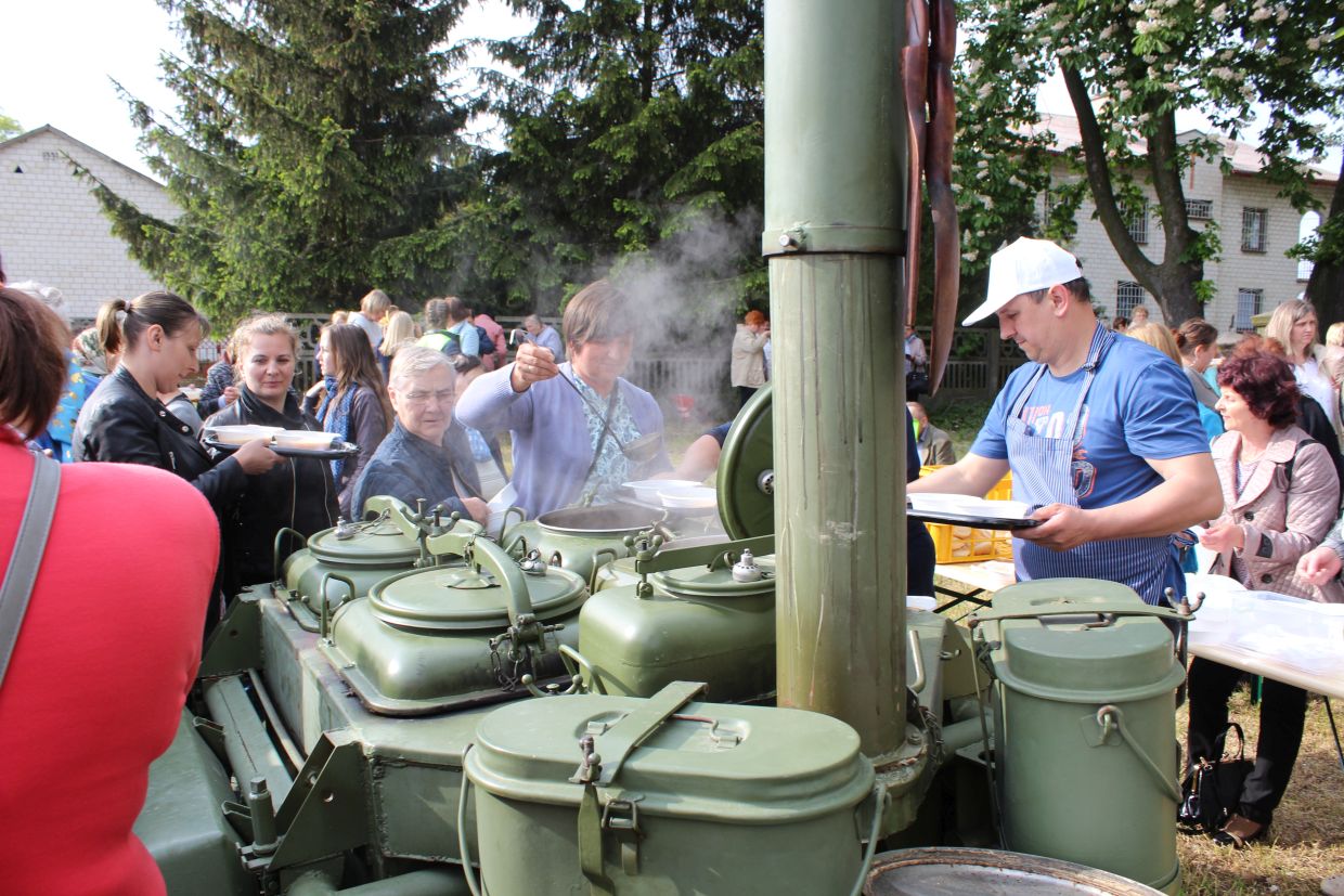 Później przed kościołem rozpoczęły się występy folklorystyczne uczniów miejscowej szkoły z Mąkolic. Parafianie zaprosili swoich gości na kolejny posiłek - grochówkę z wojskowego kotła, kanapki i ciasta.