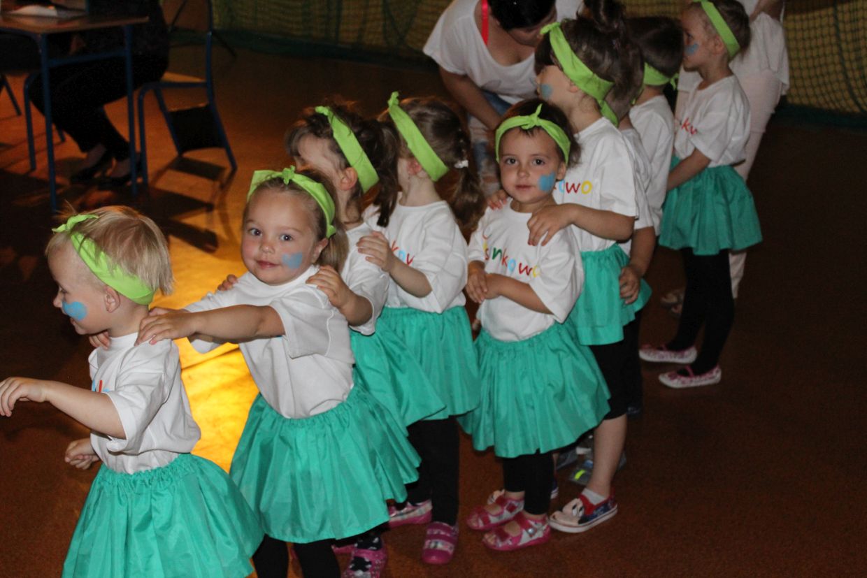 II miejsce - Pola Skopiak, Oliwia Wodzyńska, Martyna Kiciak, Marcelina Jaborska, Julia Urbanek z Przedszkola z Piątku w piosence Kasi Sobczyk "Trzynastego"