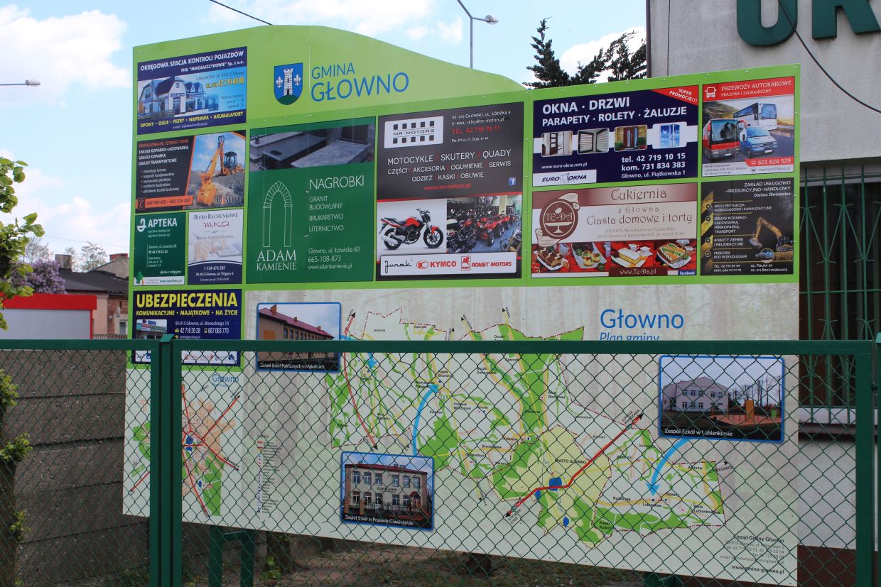 W dniu dzisiejszym została odnowiona mająca już 7 lat tablica informacyjna z planem i herbem Gminy, znajdująca się przed budynkiem Urzędu Gminy Głowno na ul. Kilińskiego 2 w Głownie.